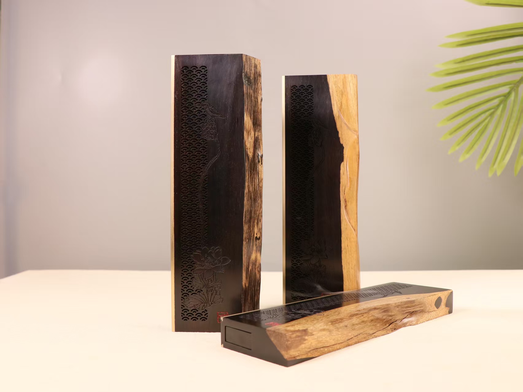 云起荷塘圆木块紫光檀香插