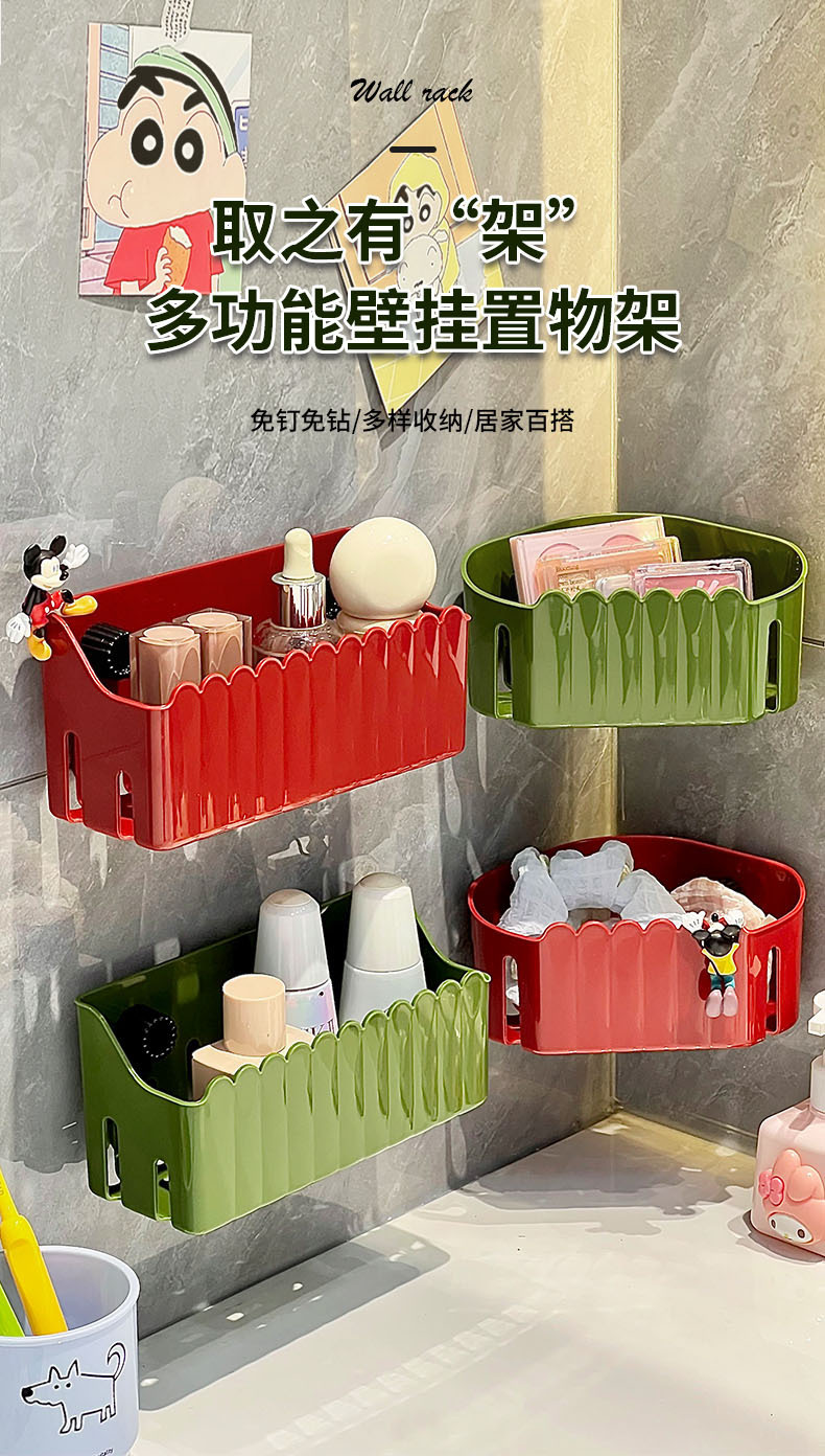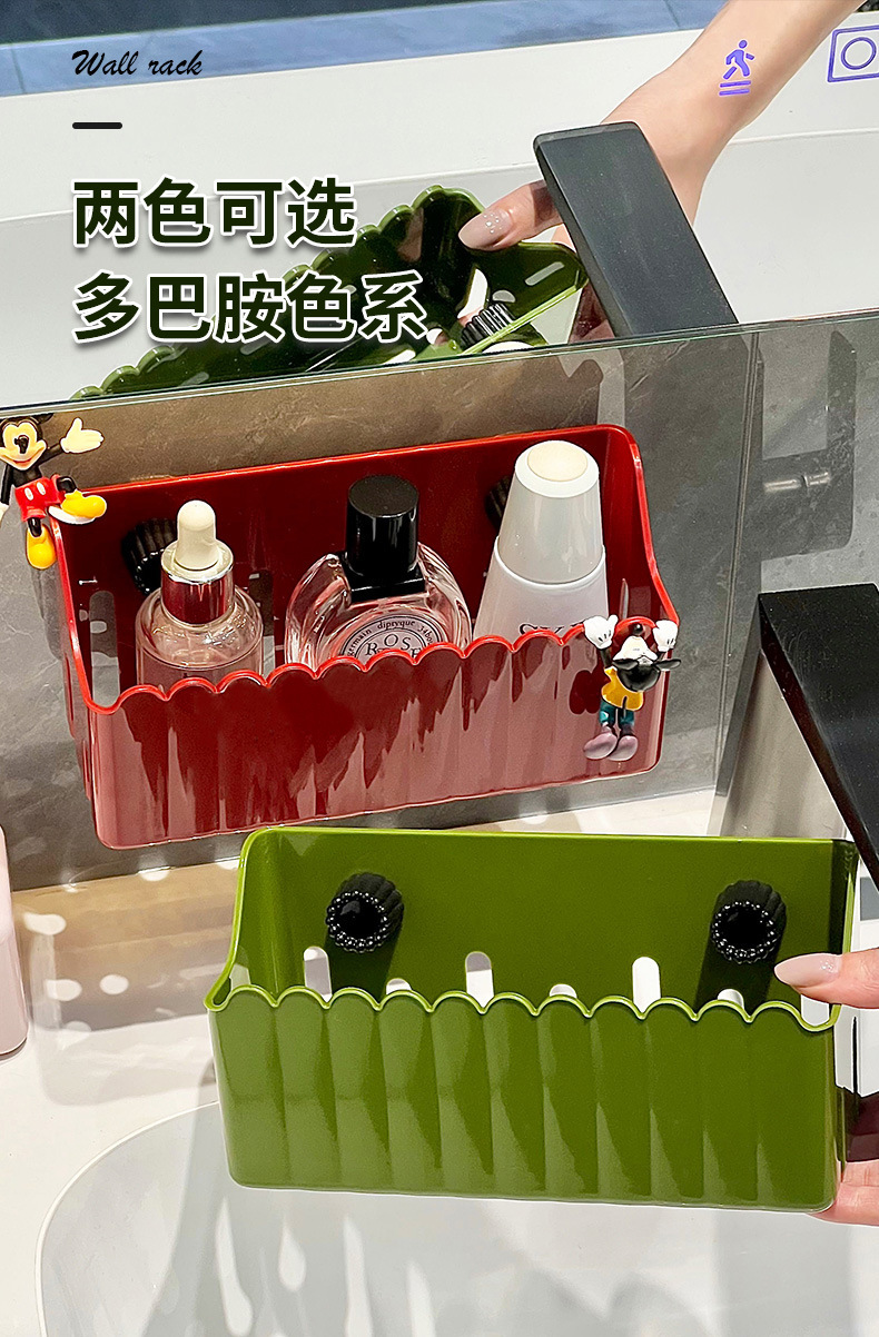 水池卫生间塑料收纳架浴室化妆品收纳篮置物架免打孔壁挂式储物