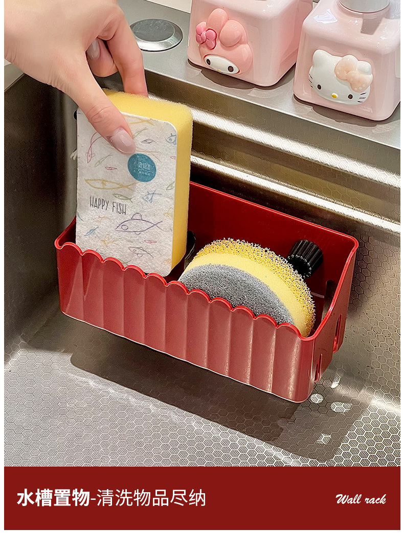 水池卫生间塑料收纳架浴室化妆品收纳篮置物架免打孔壁挂式储物 商品图7