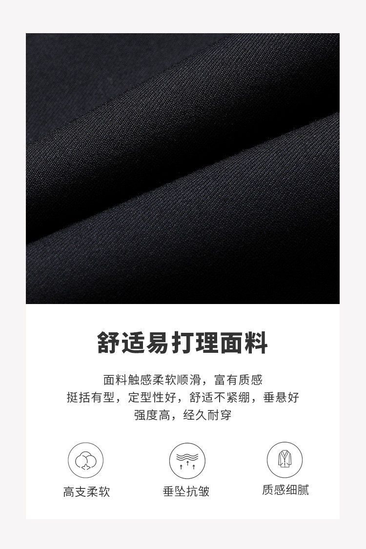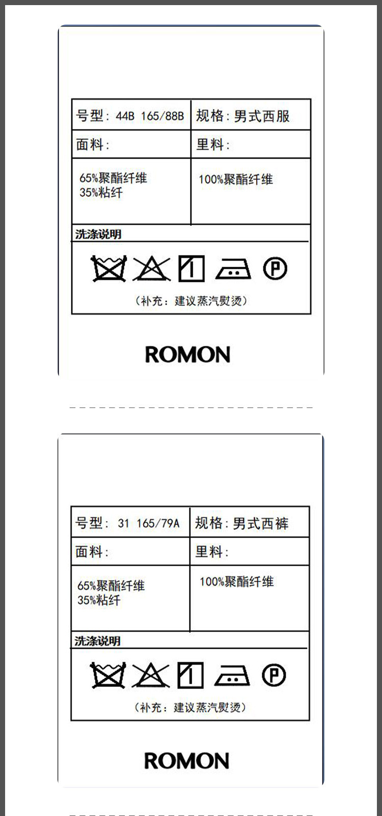 面料:65%聚酯纤维,35%粘纤;里料:100%聚酯纤维