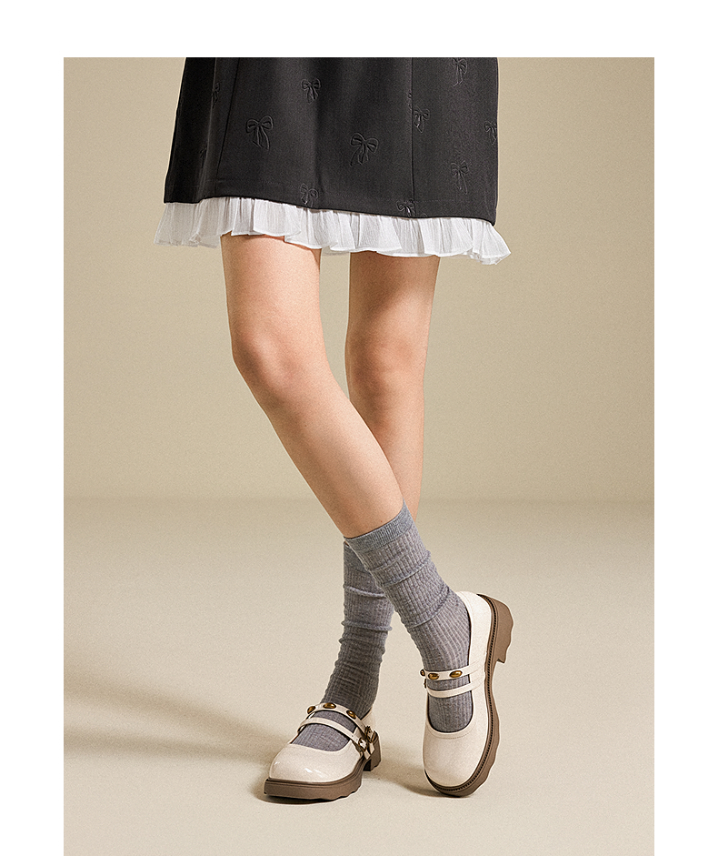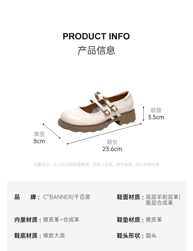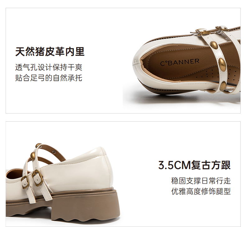 千百度厚底圆头玛丽珍鞋女羊皮小皮鞋乐福鞋浅口单鞋A25468962
