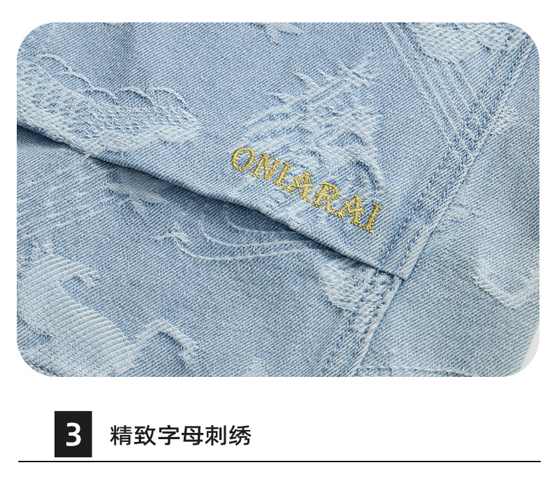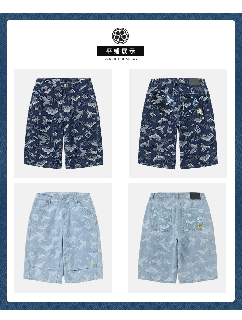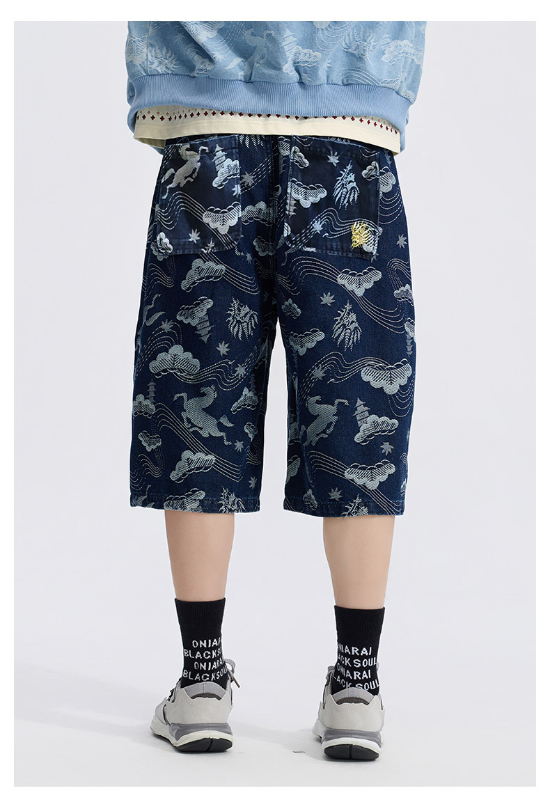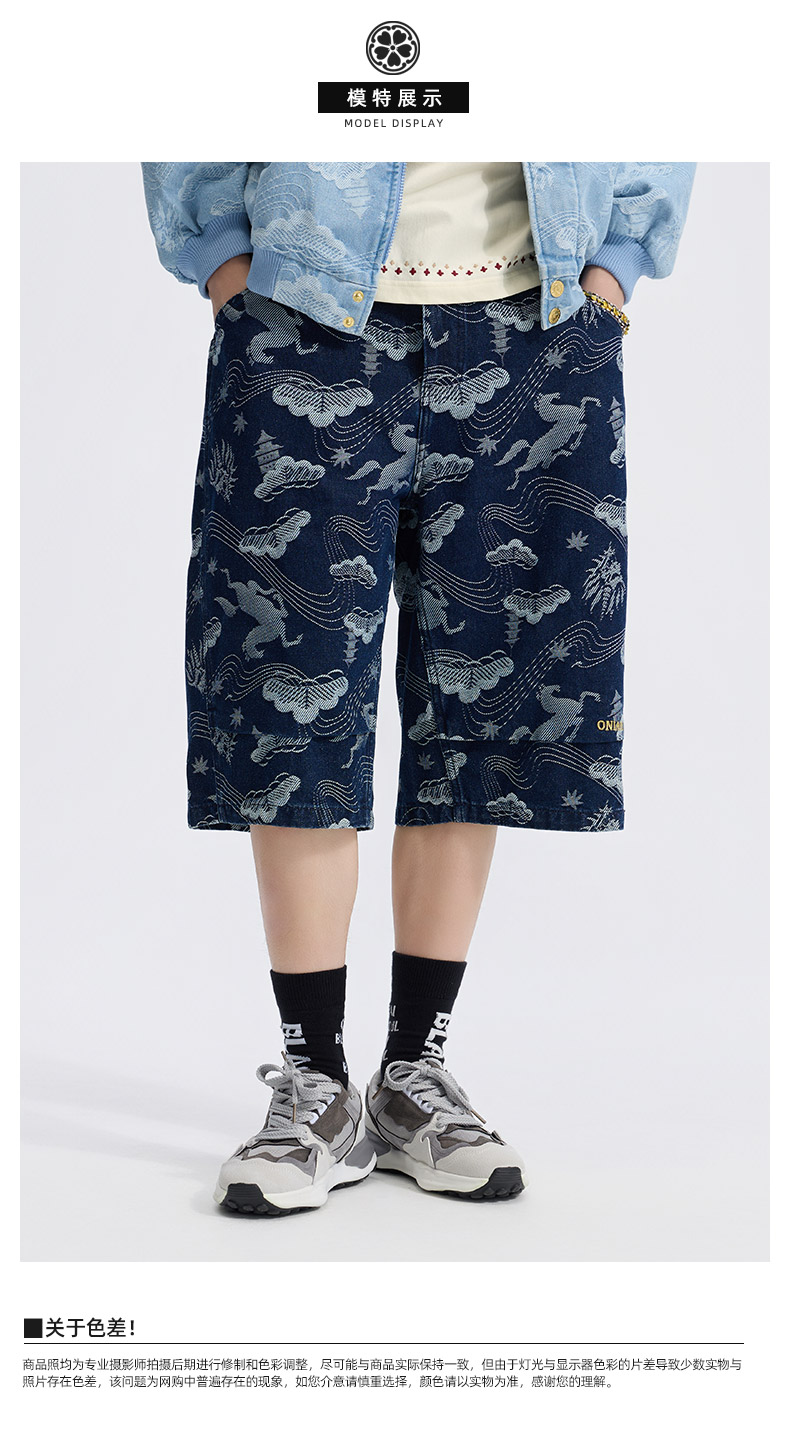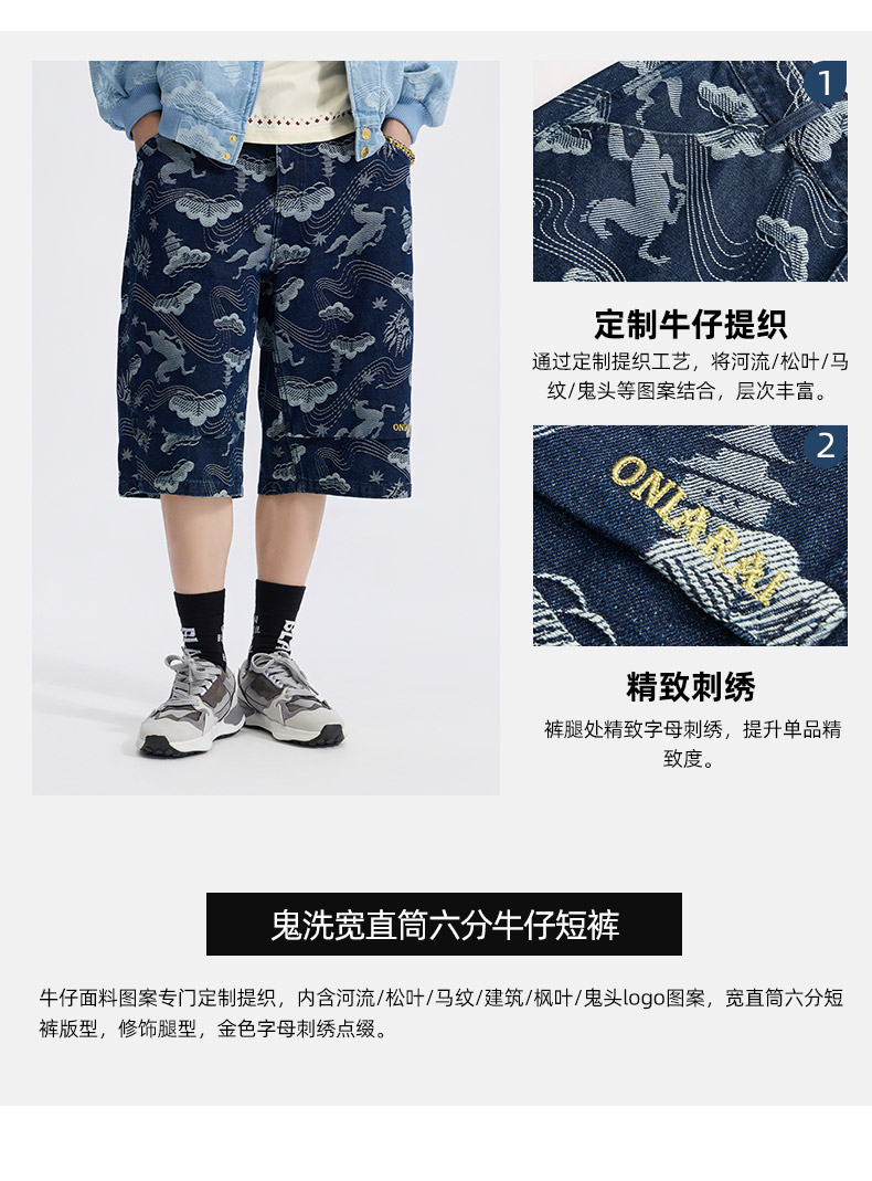 ONIARAI/鬼洗26春季新品黑金马纹宽直筒六分牛仔短裤男 26B0541