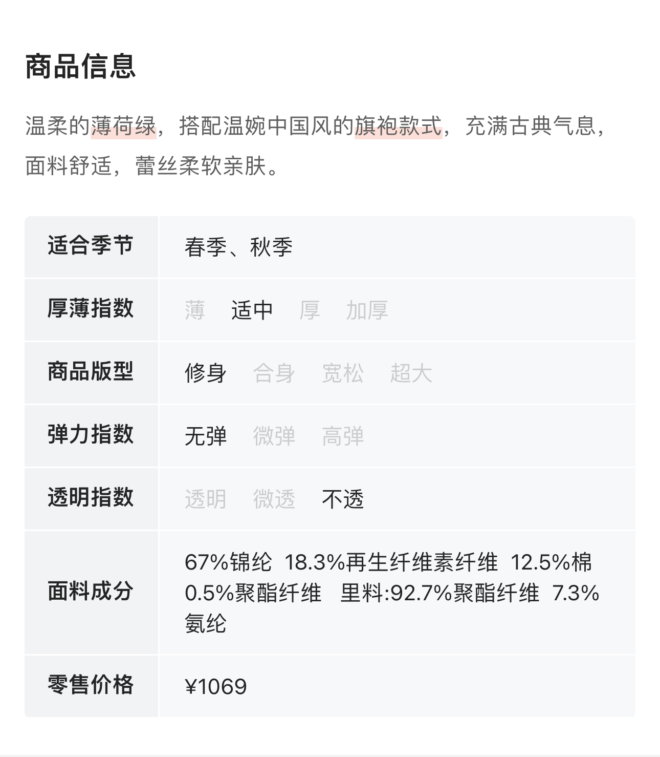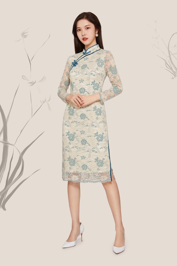 Le Malene 中国风旗袍款薄荷绿连衣裙 9823