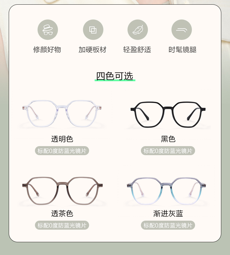 普莱斯光学镜架66307 大框修颜 百搭不夹脸 β钛材质 三色可选 男女同款