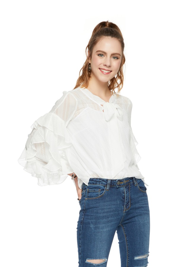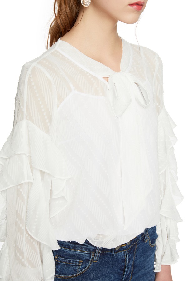 LNNNS 荷叶边饰半透明系带上衣 6378