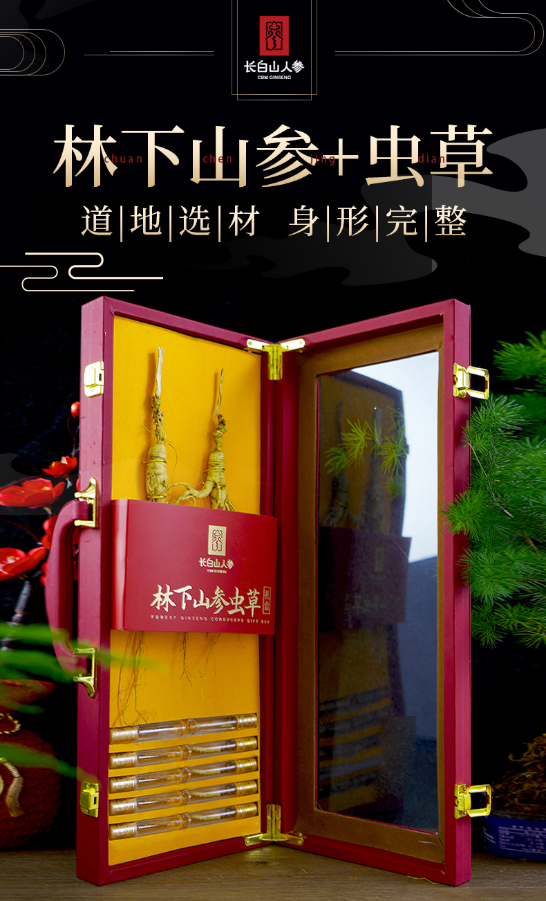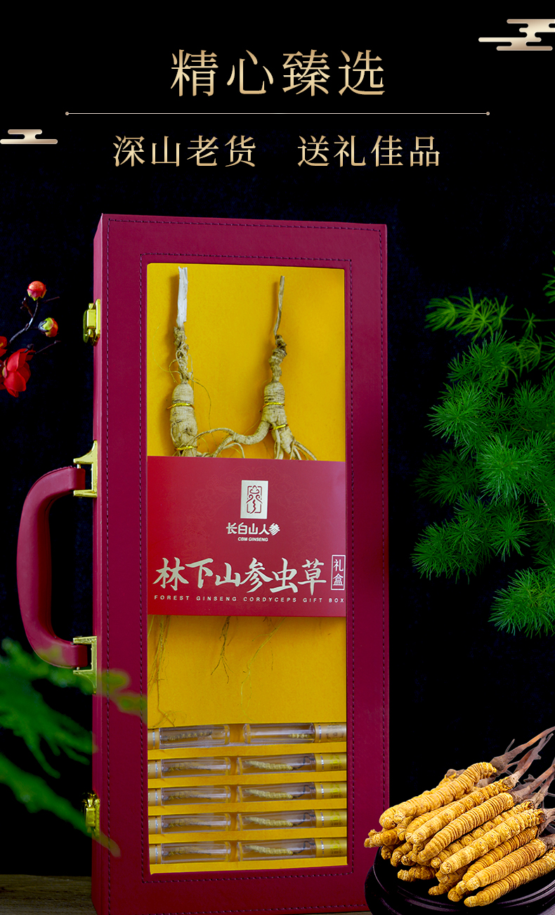 热卖【林下山参虫草礼盒装】长白山人参林下山参虫草礼盒装深山密林生长人参15g虫草2g