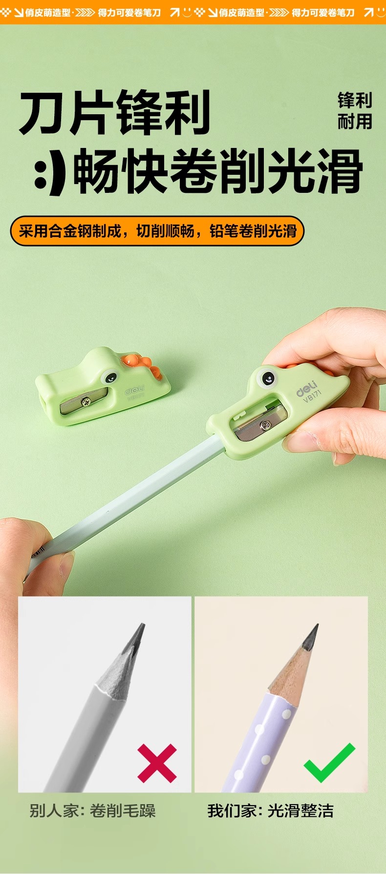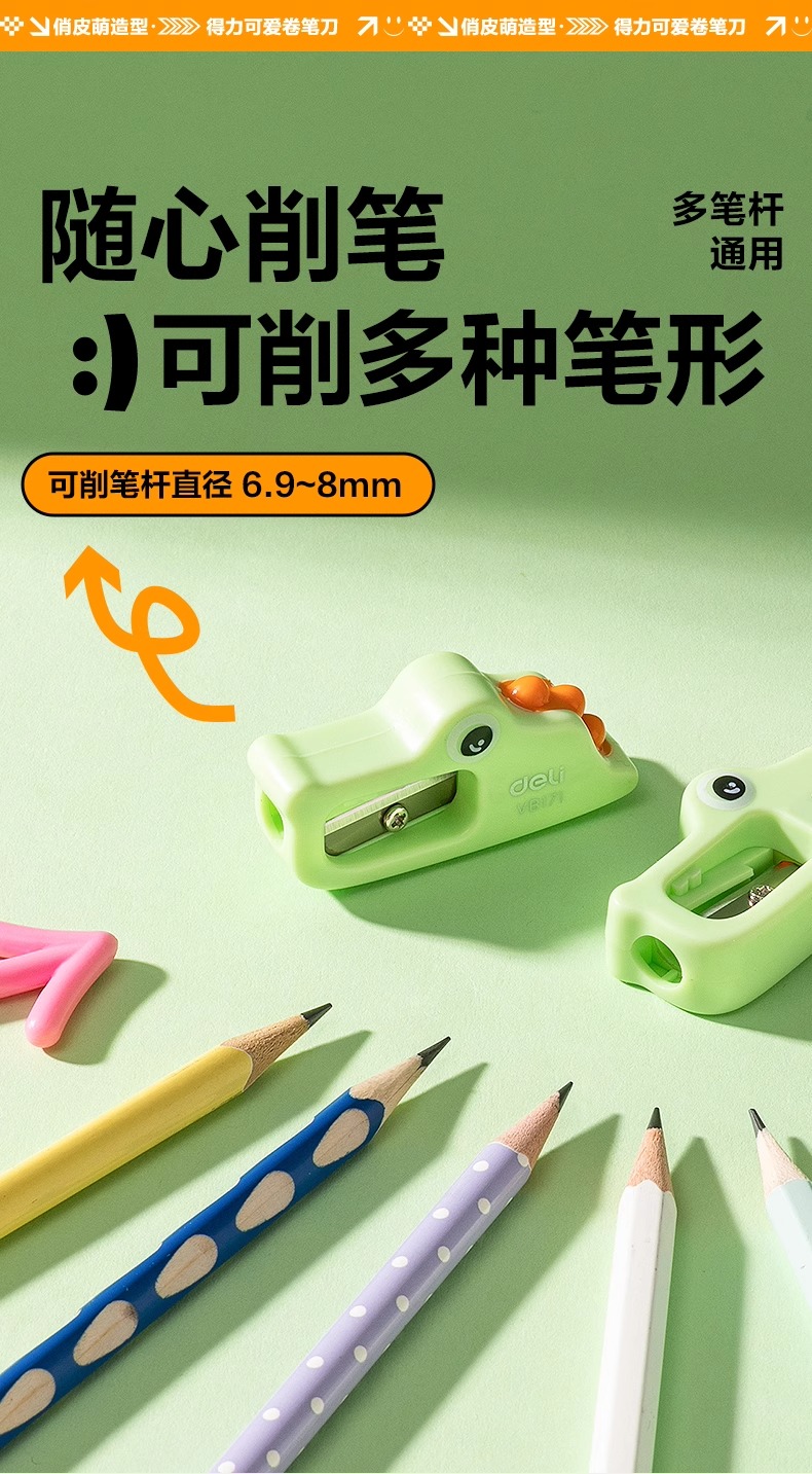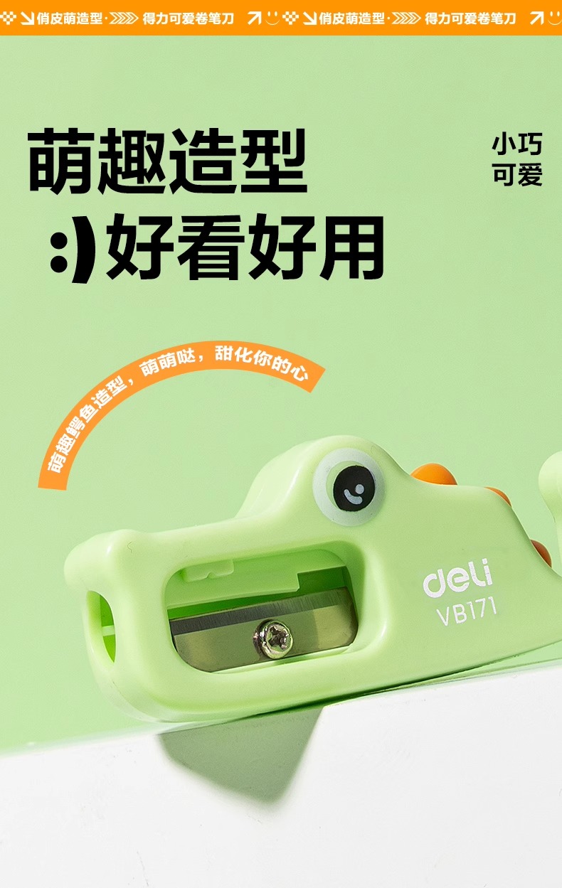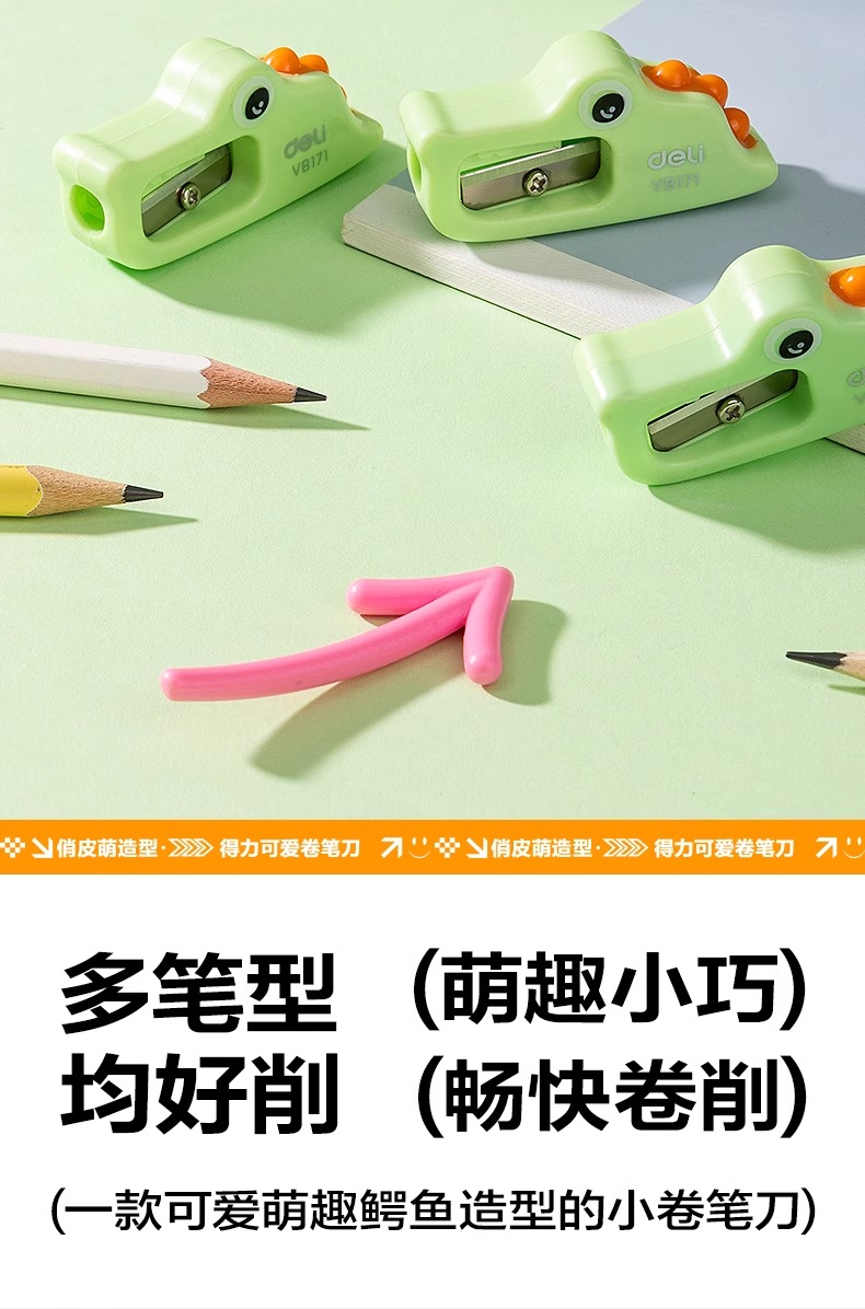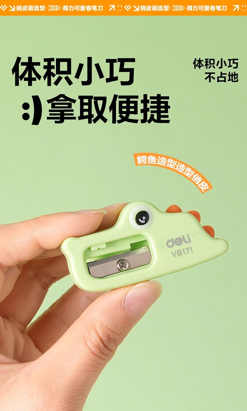得力VB171小鳄鱼造型卷笔刀儿童小学生专用小型便携转笔刀削笔刀一年级手动铅笔削笔器