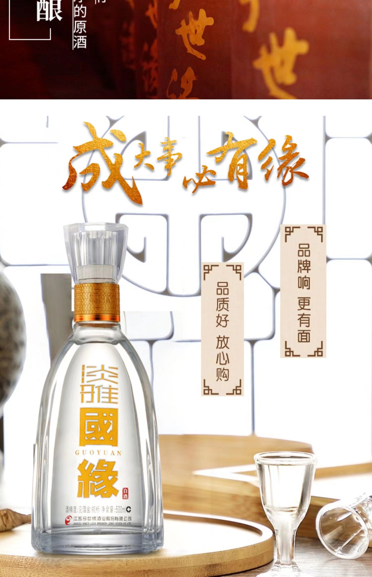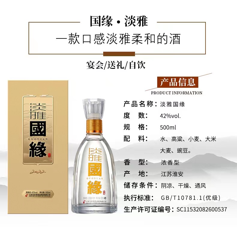 国缘淡雅 42度 500mL*6瓶 整箱装【臻选好酒】
