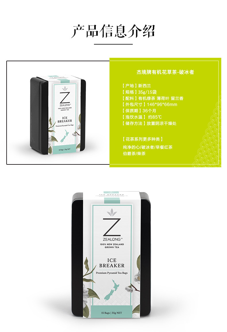 ZEALONG杰境 花草茶系列调味绿茶 破冰者 2.5g*15袋/盒