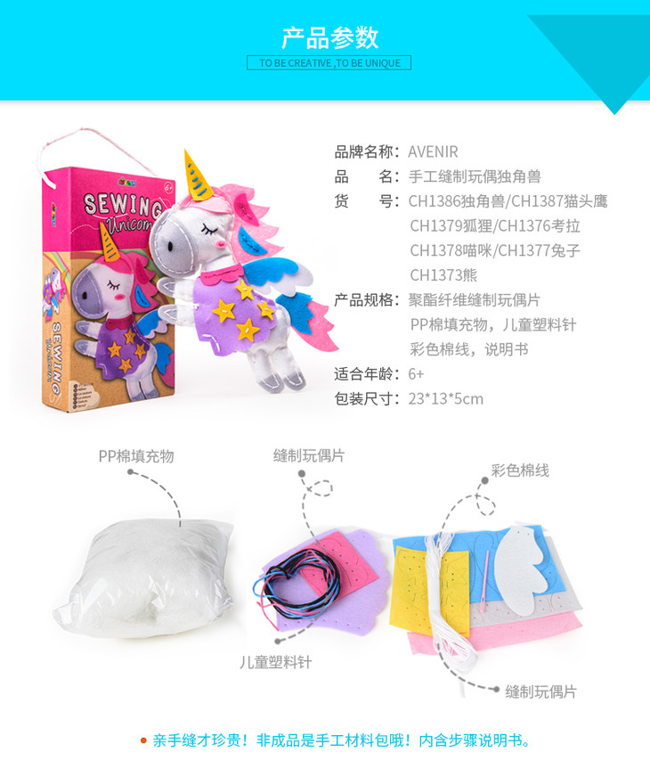 艾维尼avenir儿童手工diy制作材料毛绒不织布艺作业玩具缝制玩偶独角兽