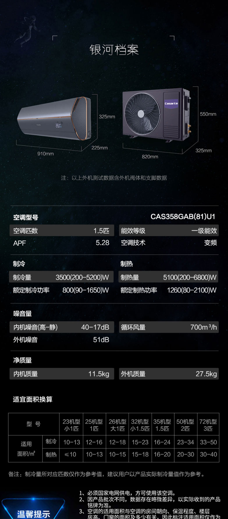 卡萨帝空调1.5匹 银河 卧室变频冷暖挂机 一级能效 智慧语音CAS358GAB(81)U1