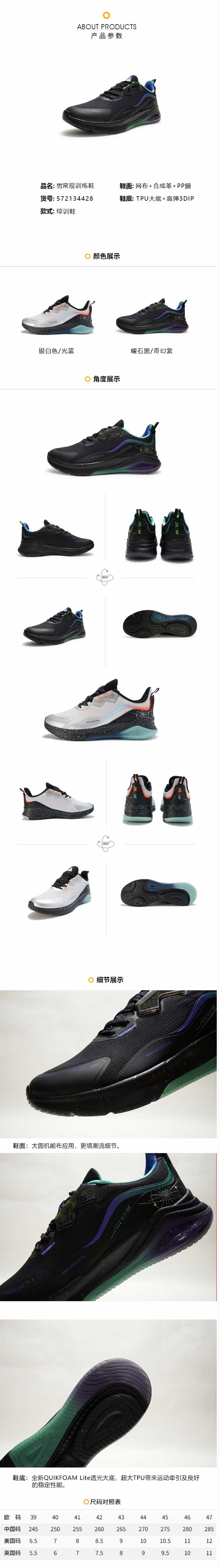 361度2021秋季运动Q弹软底男子防滑综训鞋572134428