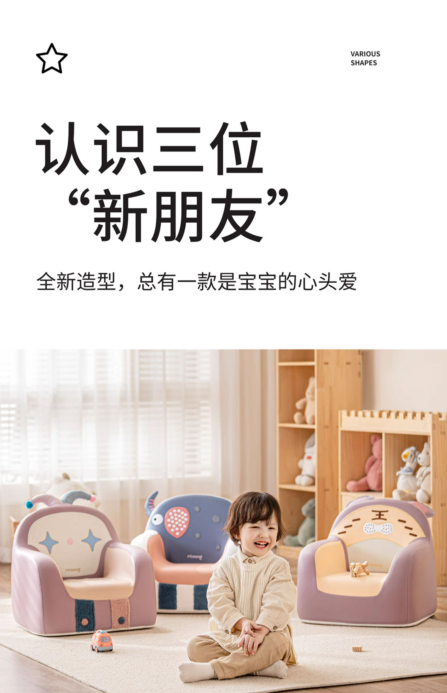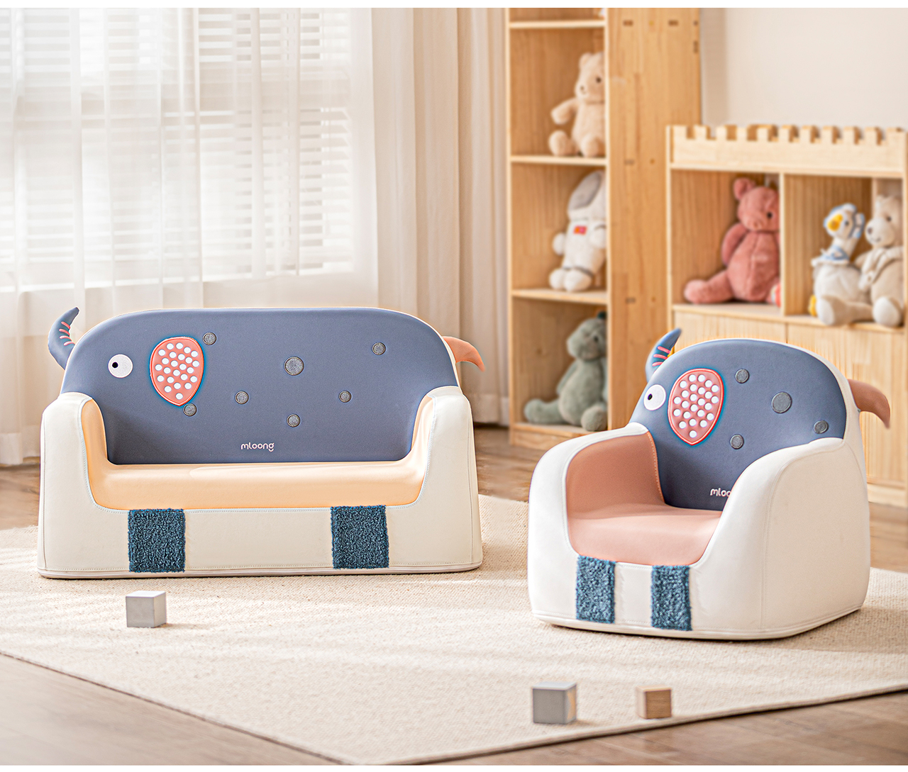 【冬日暖拥】曼龙mloong儿童太空舱沙发婴幼儿可爱宝宝椅阅读角布置双人小沙发读书学坐椅子