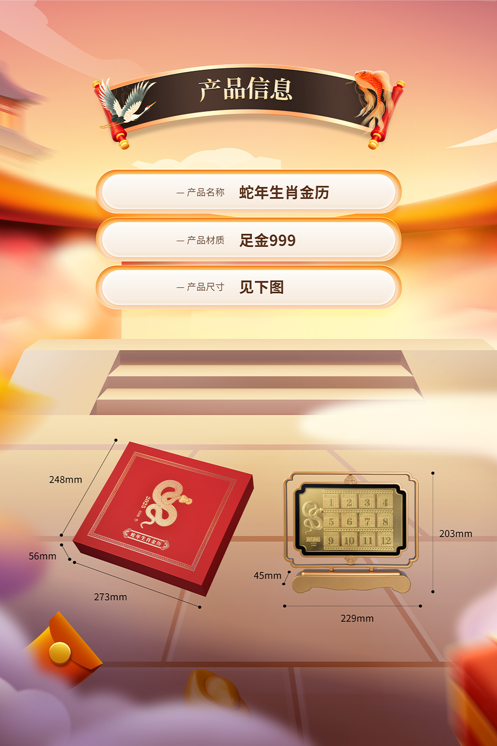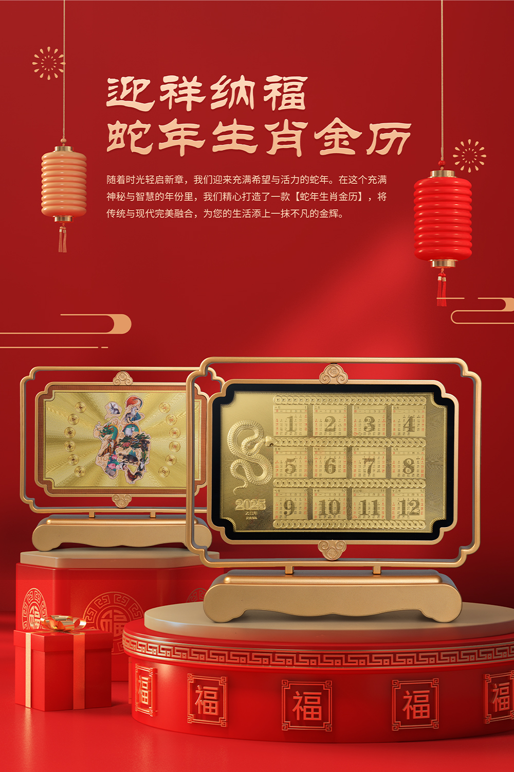 2025蛇年金台历 金蛇献瑞(带精美礼盒)