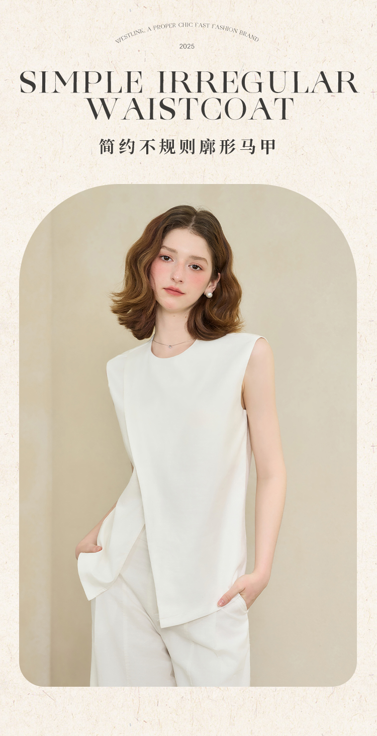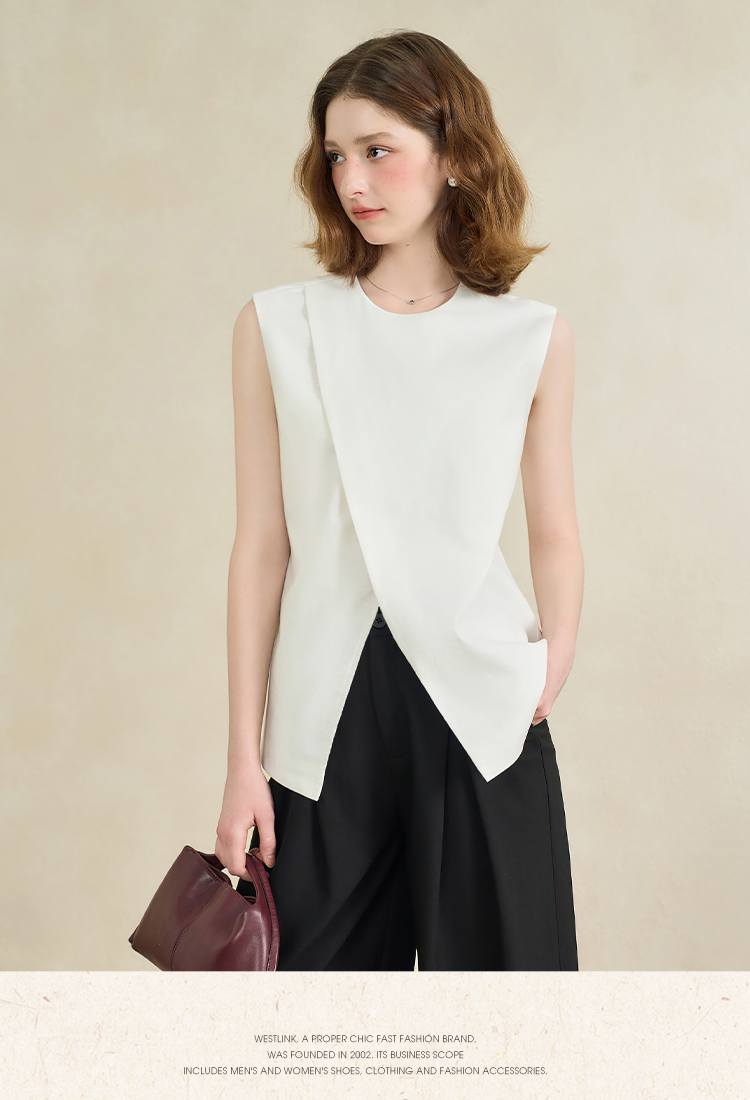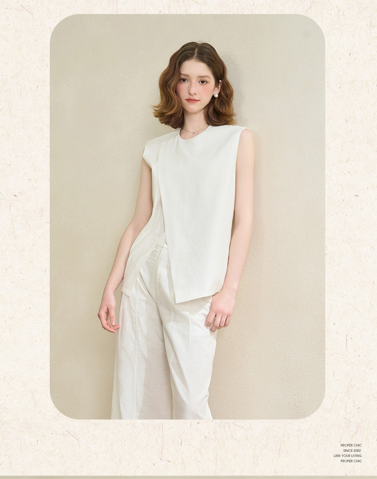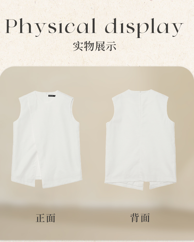 【舒适棉麻面料】设计感不规则剪裁搭片马甲女夏季上衣V1150686