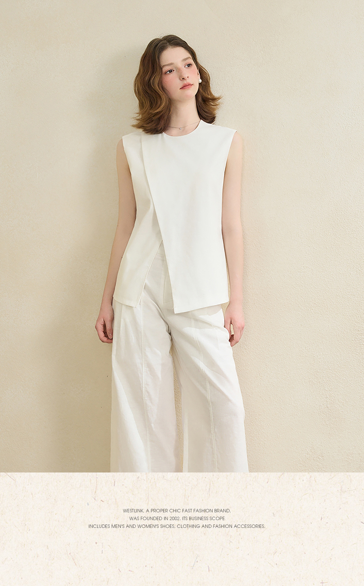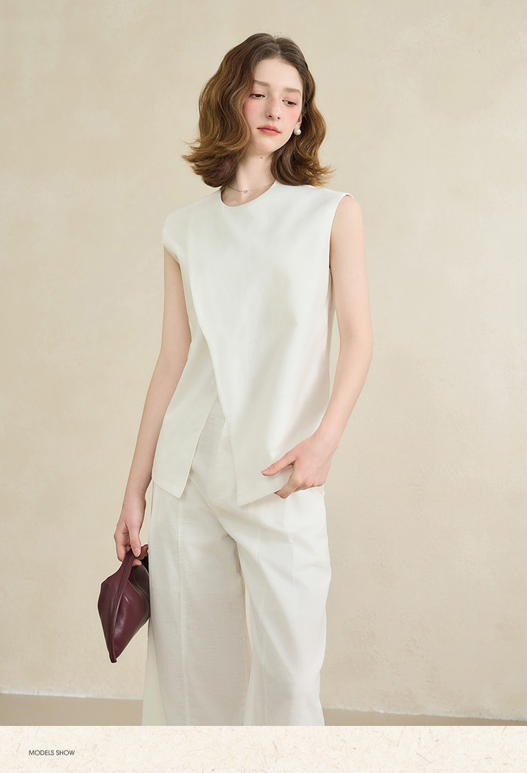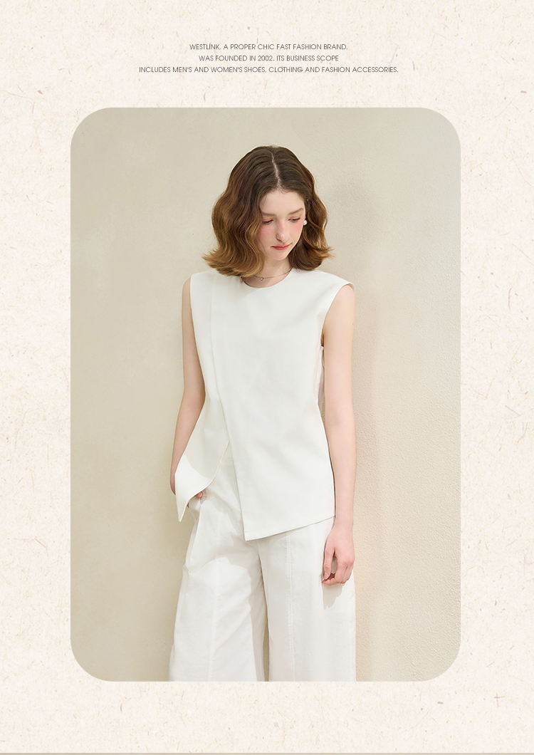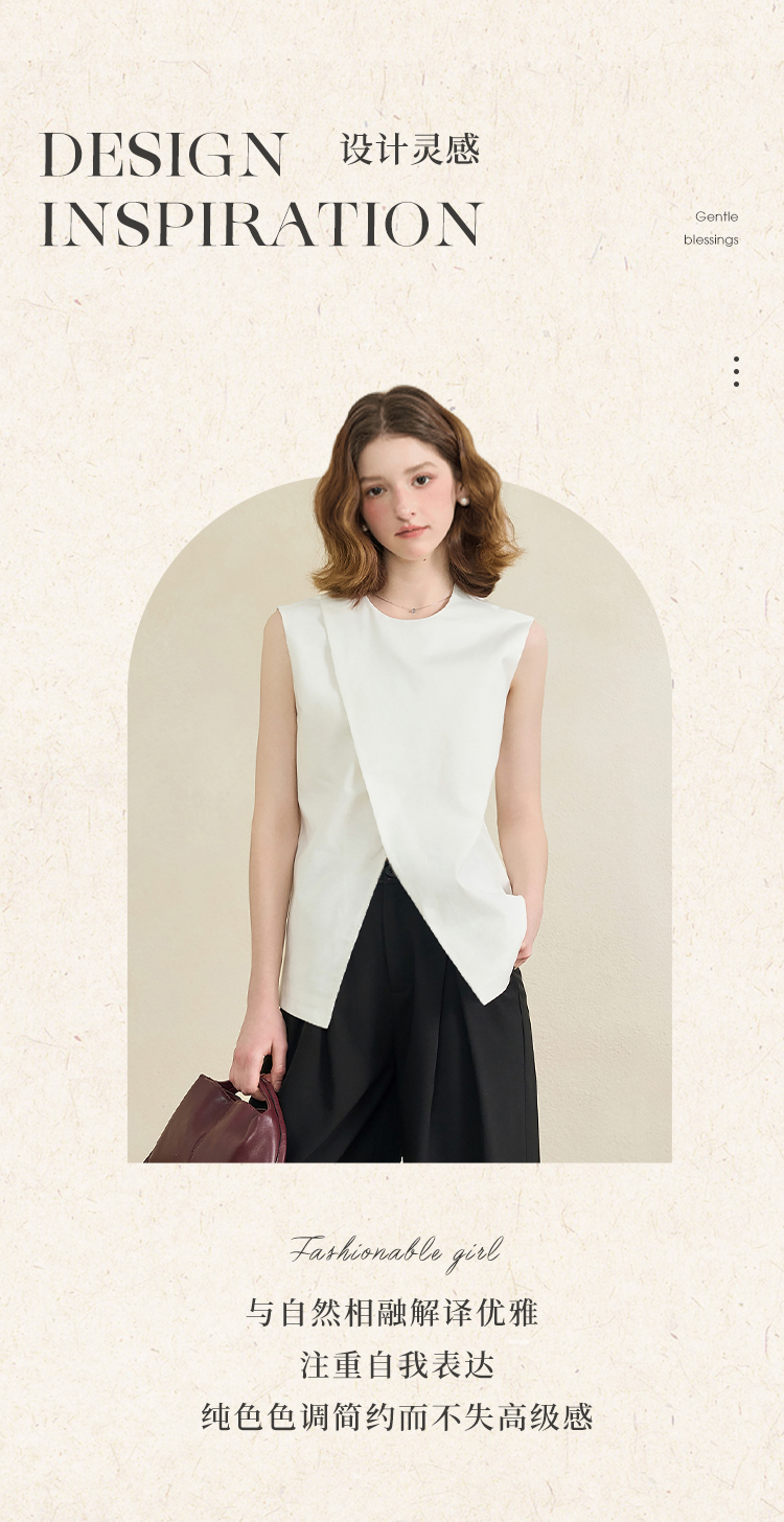 【舒适棉麻面料】设计感不规则剪裁搭片马甲女夏季上衣V1150686
