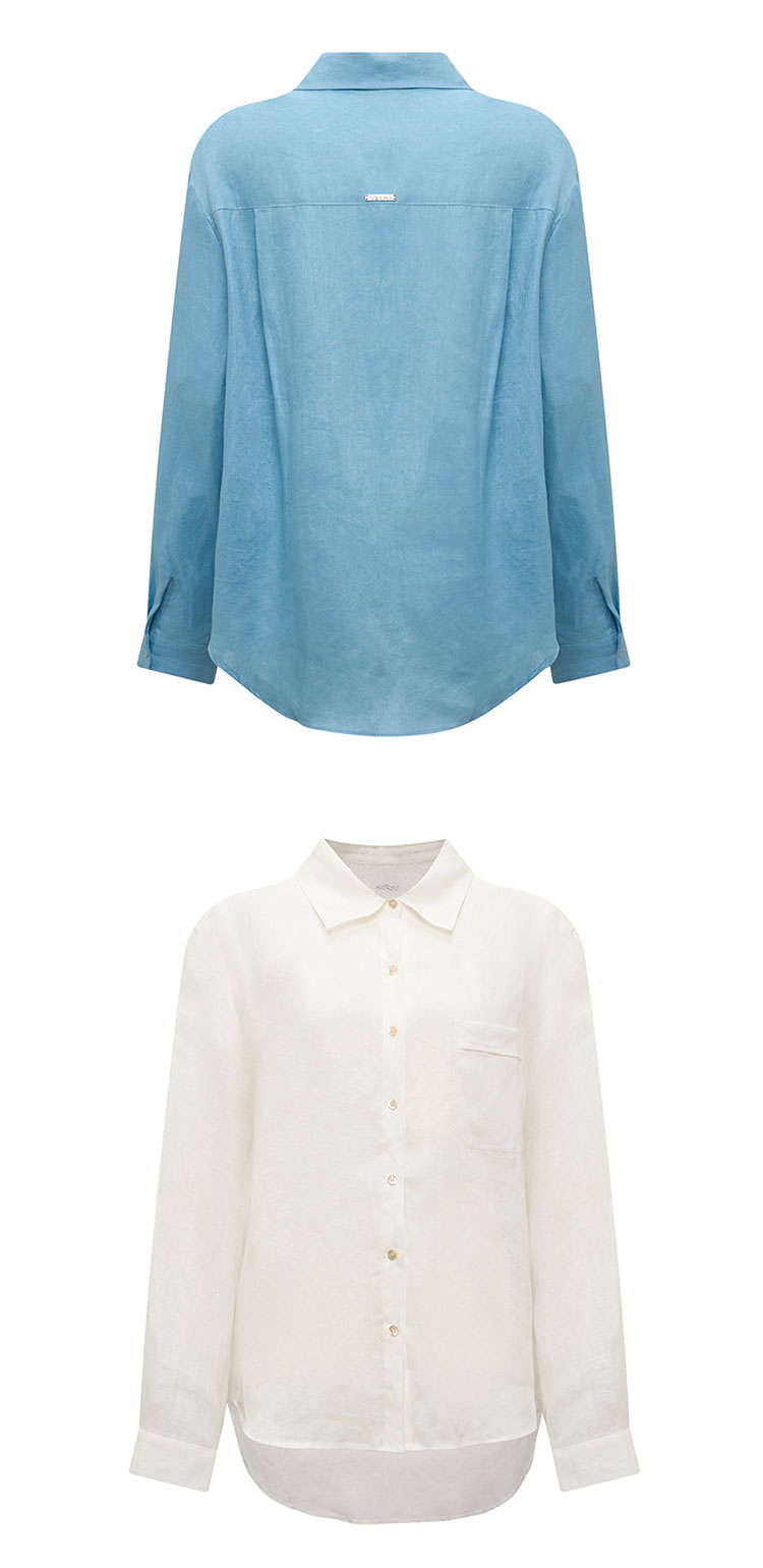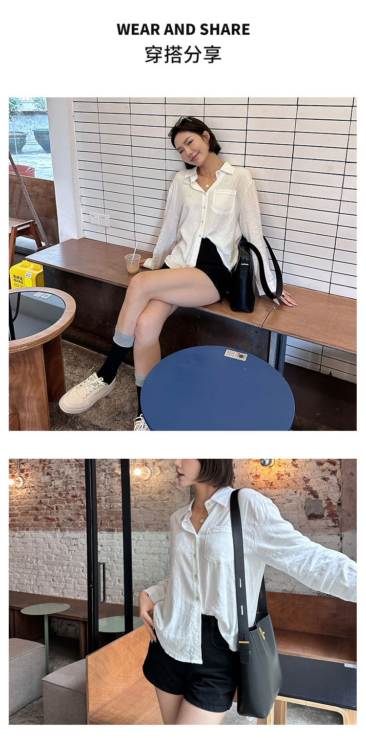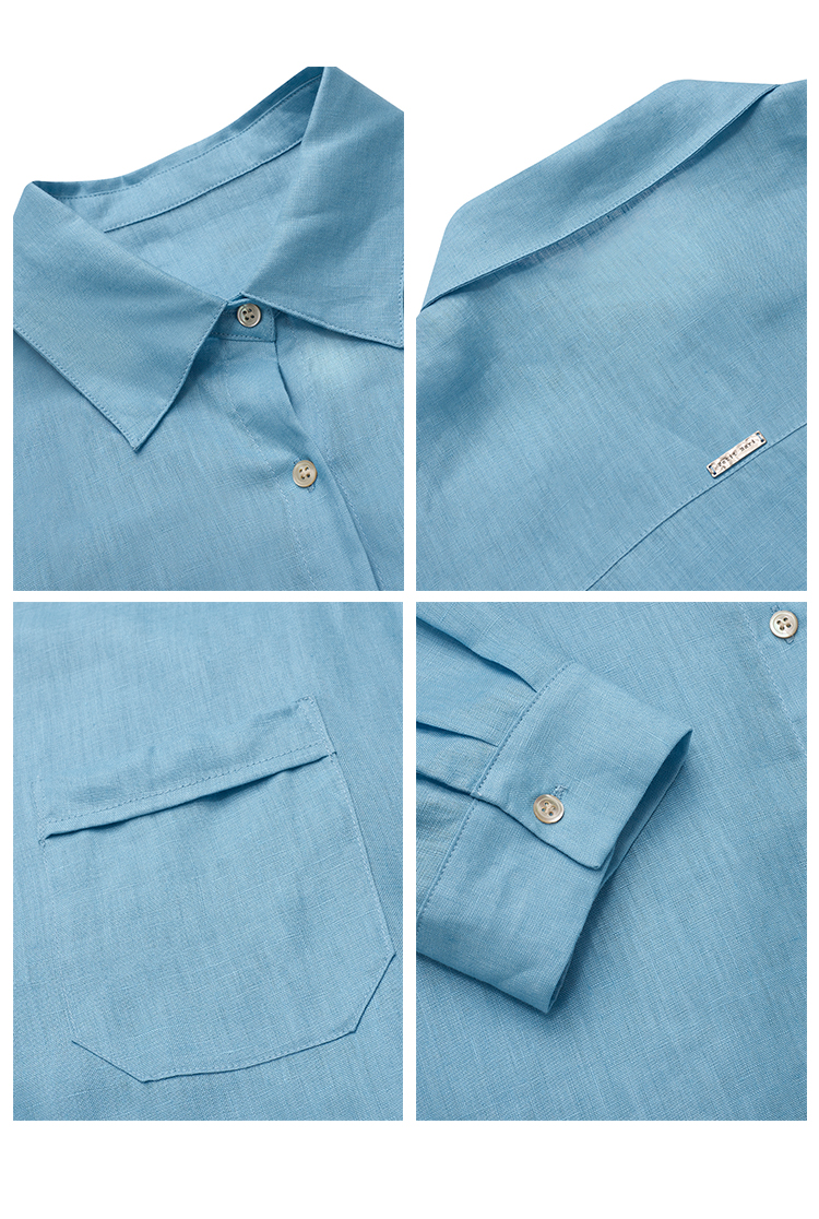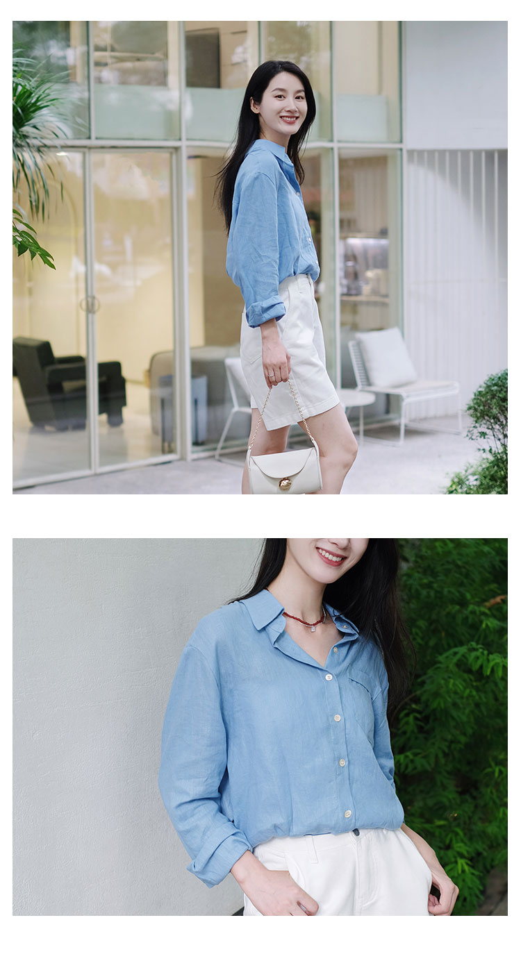 【2件9折】【Petit Bari】(多色)百搭亚麻纯色长袖衬衫简约休闲高品质百搭