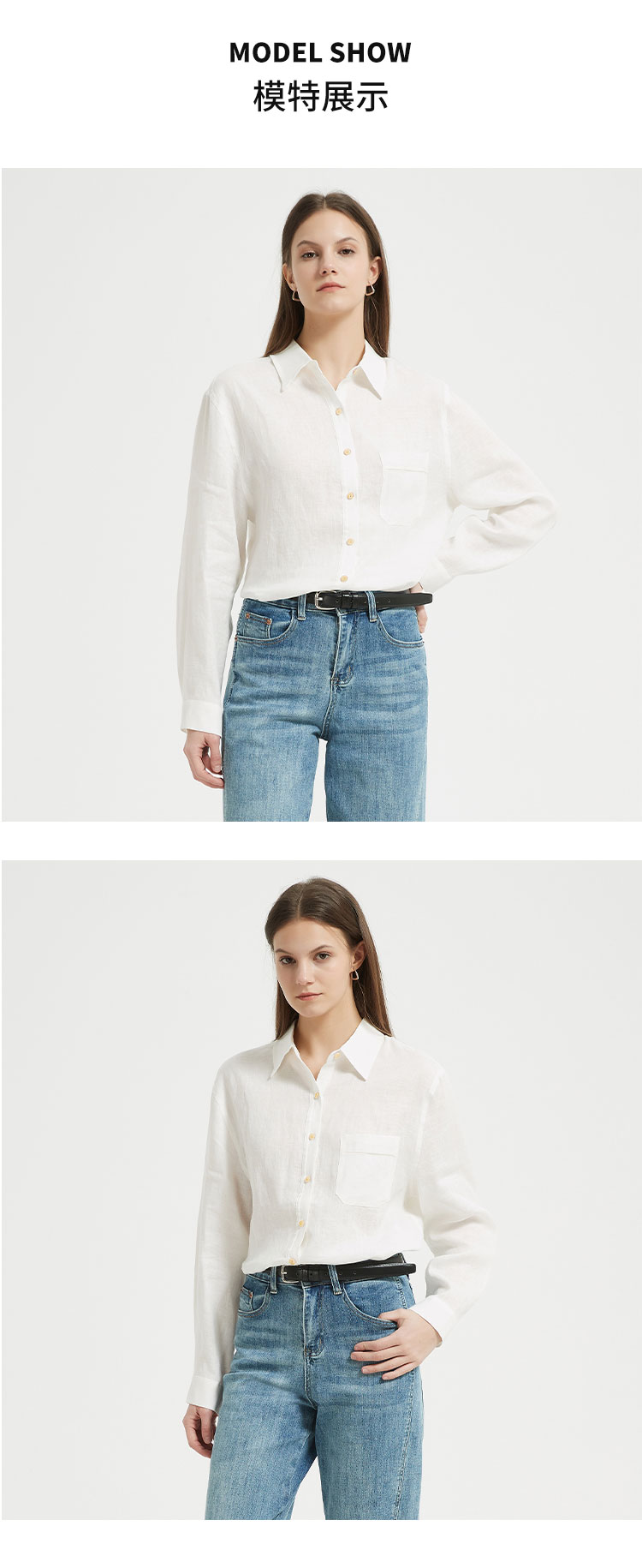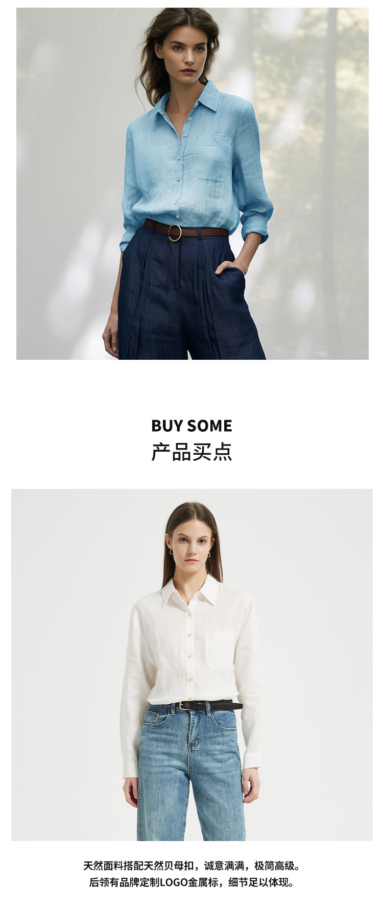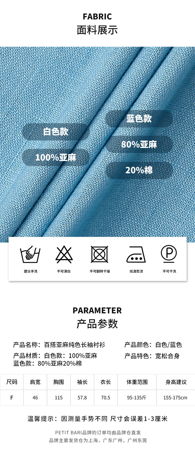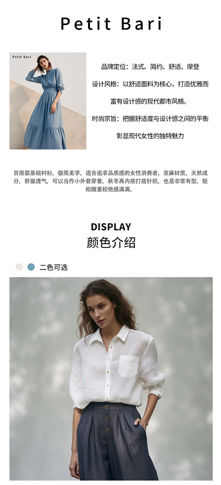 【2件9折】【Petit Bari】(多色)百搭亚麻纯色长袖衬衫简约休闲高品质百搭