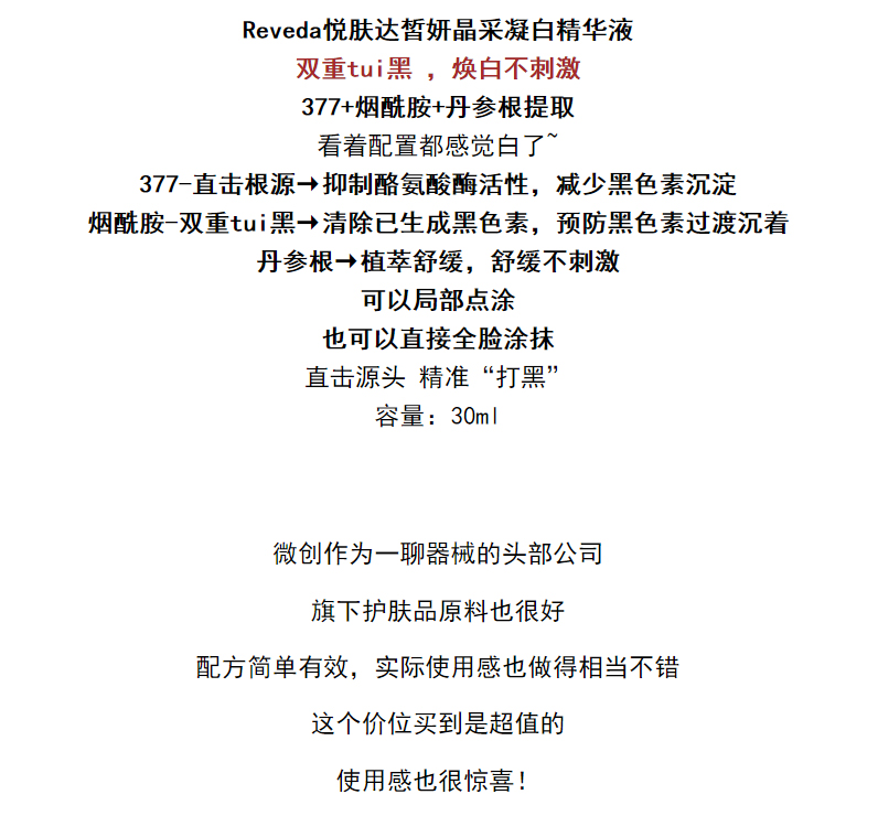 【商品名称】Reveda悦肤达晶采凝白精华液30ml