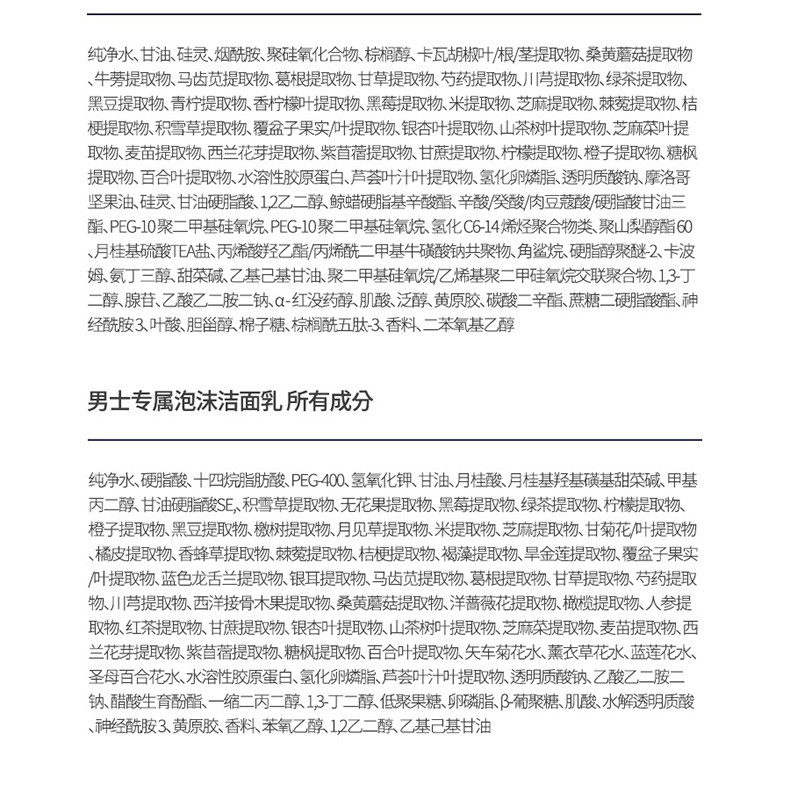 水、乳、洗面奶一键get!01水补充肌肤活力,平衡水油,02乳高度保湿不粘腻 清爽滋润 ,03洗面奶泡沫丰富洗完不紧绷,