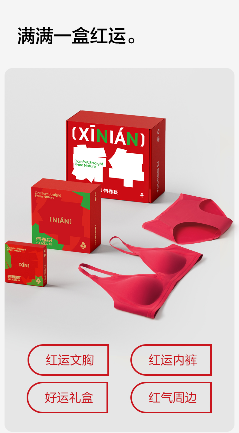 【新年限定】有棵树新年红色蝴蝶结网纱礼盒内衣礼盒套装-S0010