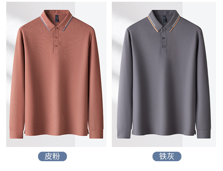 【华夫格】罗蒙春秋款男士抗皱免烫polo衫男长袖t恤男商务男士polo衫