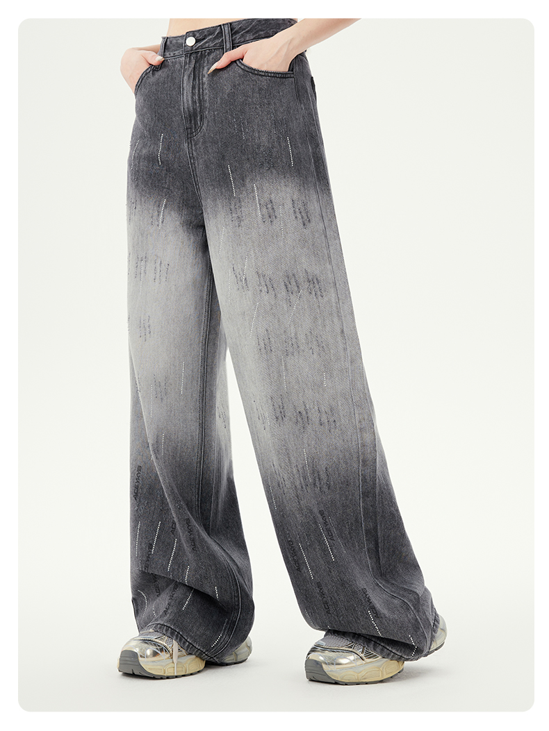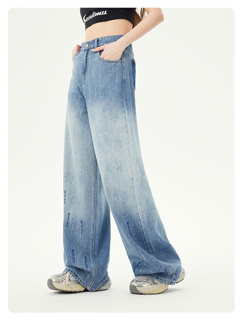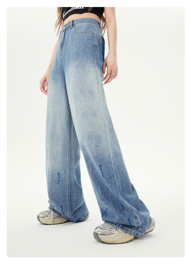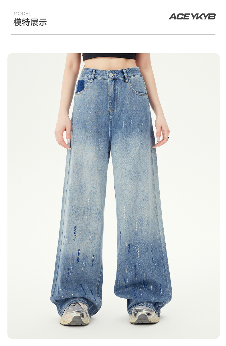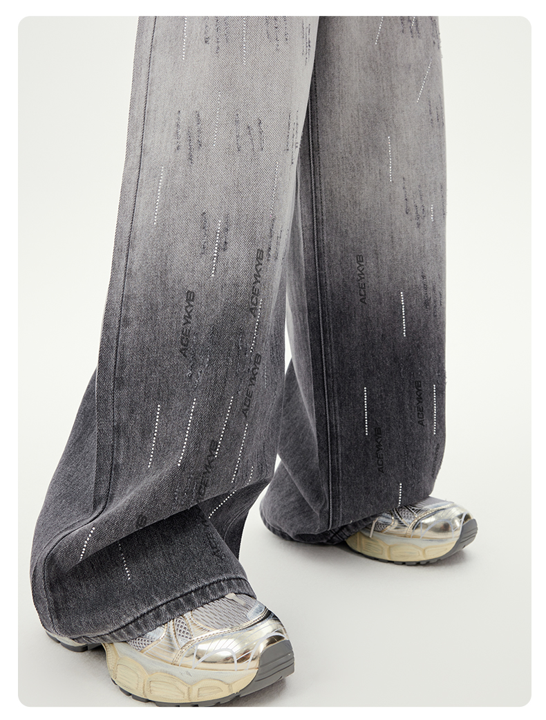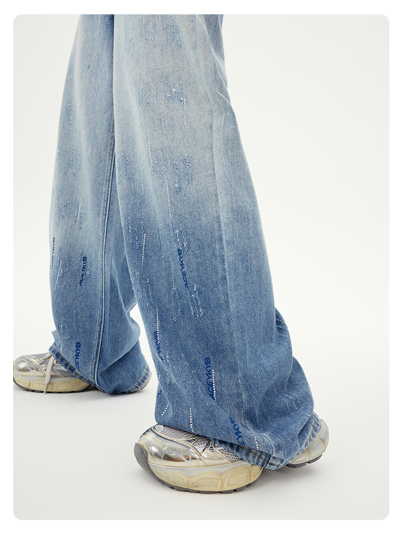 YKYB黄子韬牛仔裤直筒裤时尚潮流环保烫钻做旧经典个性牛仔裤Y52NNK046