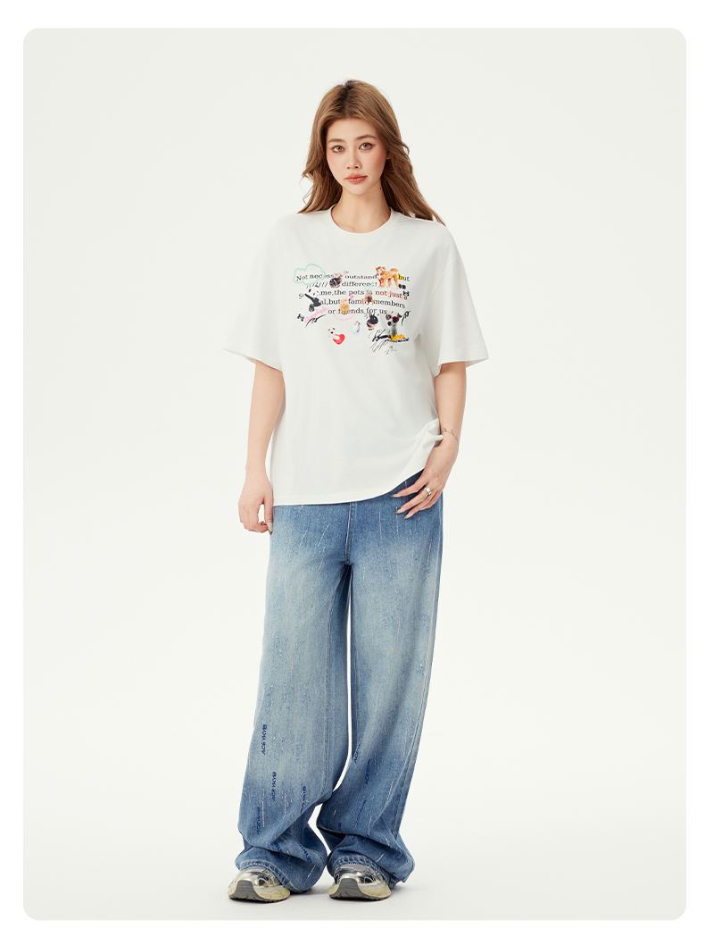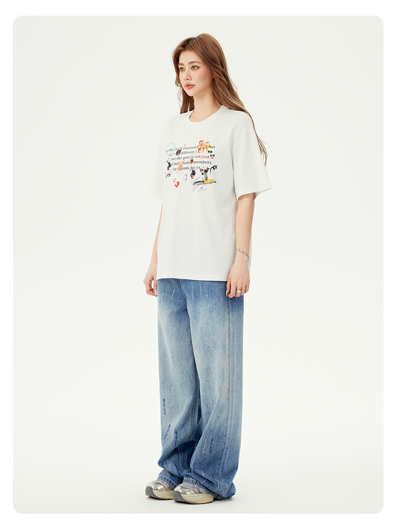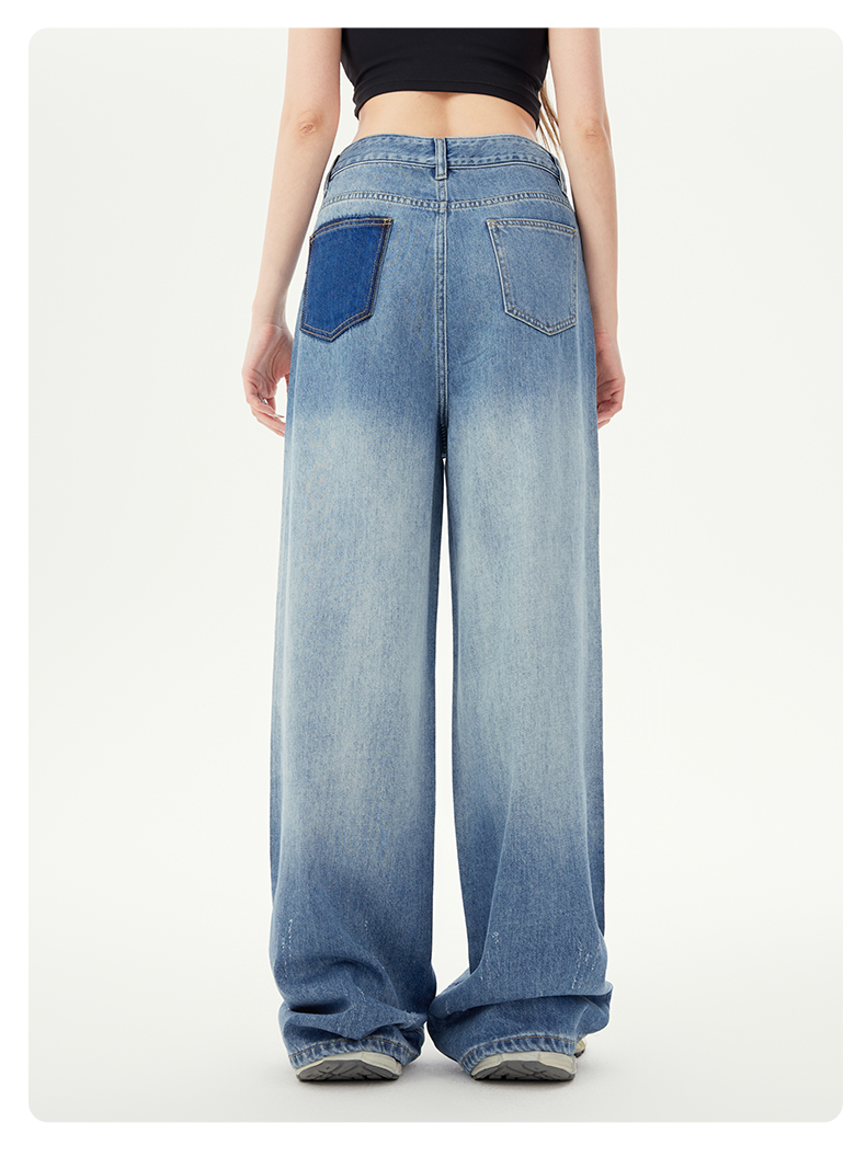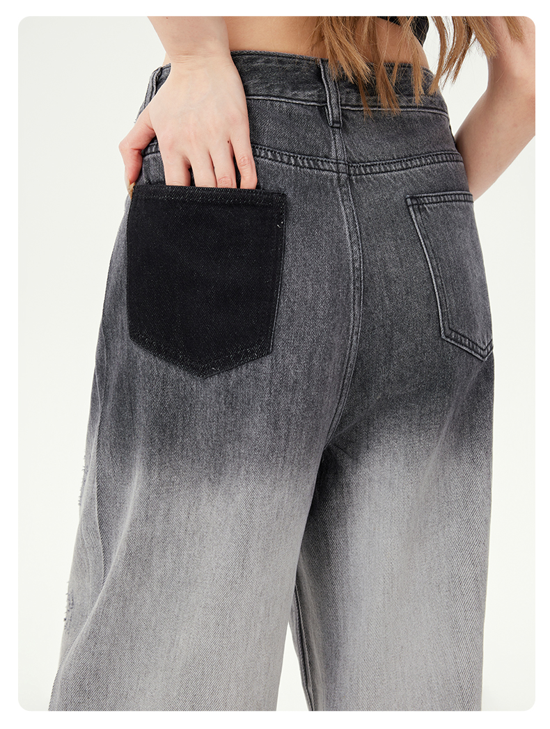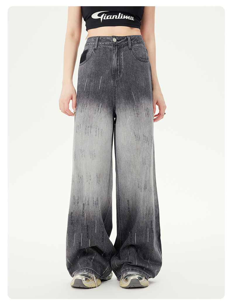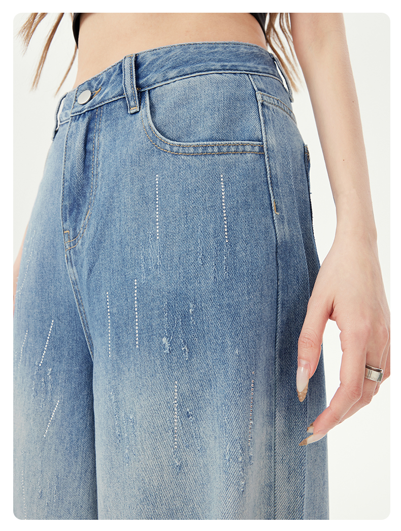 YKYB黄子韬牛仔裤直筒裤时尚潮流环保烫钻做旧经典个性牛仔裤Y52NNK046