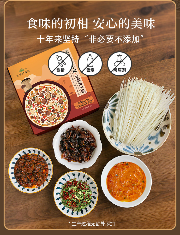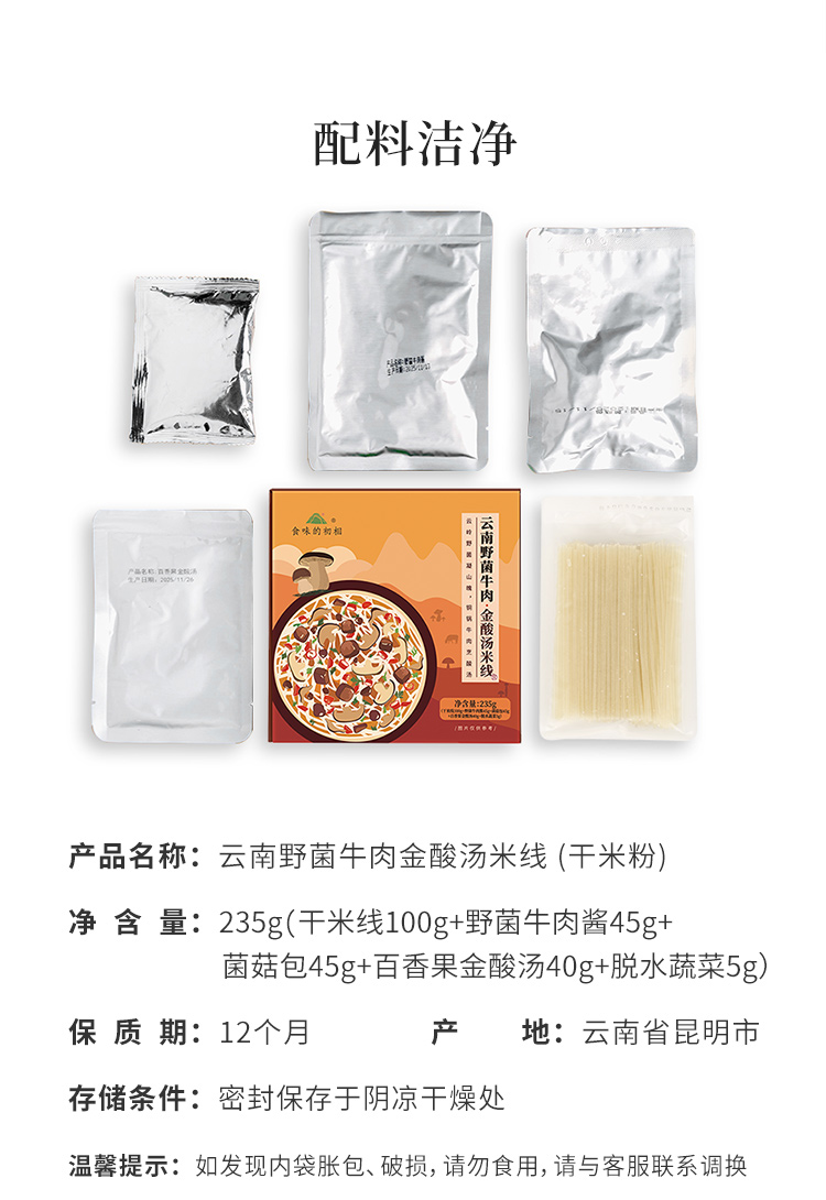 【地道风味丨食味的初相 云南野菌牛肉金酸汤米线*3盒/5盒】精选土黄牛牛腱子肉,肉质紧实,美味牛肝菌等低温熬制,百香果浓郁酸汤底,四种不同定制料包+米线,Q弹爽口,美味十足~