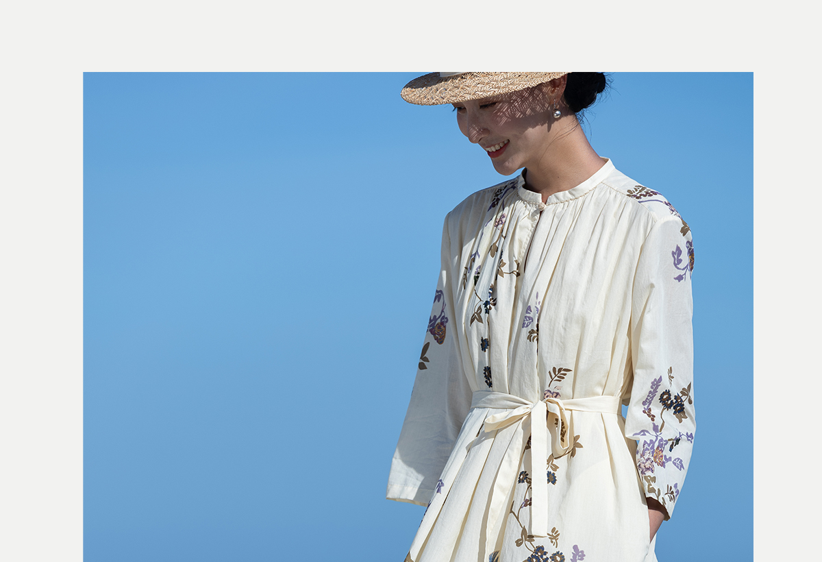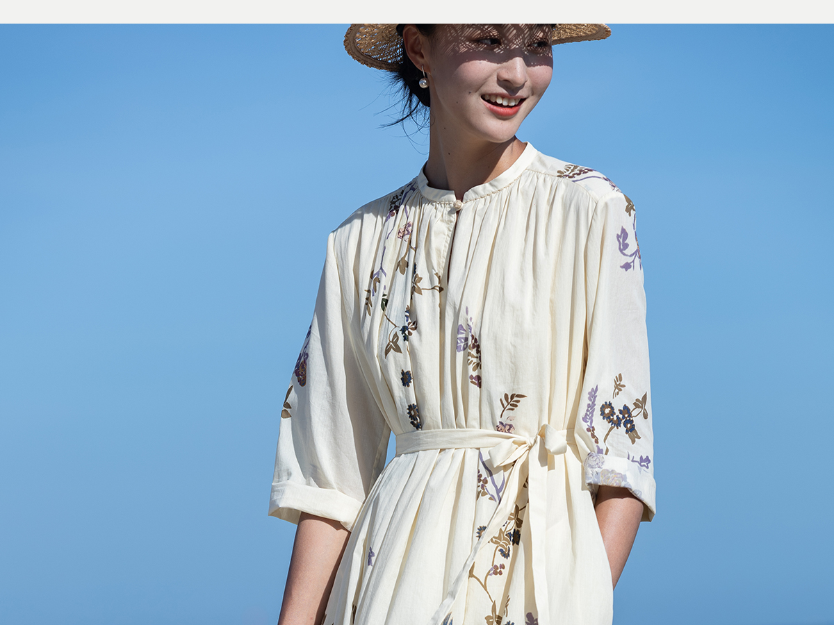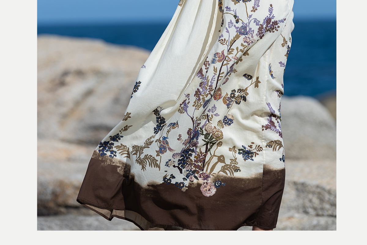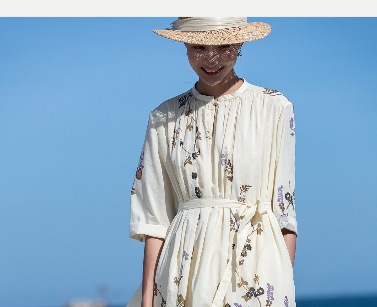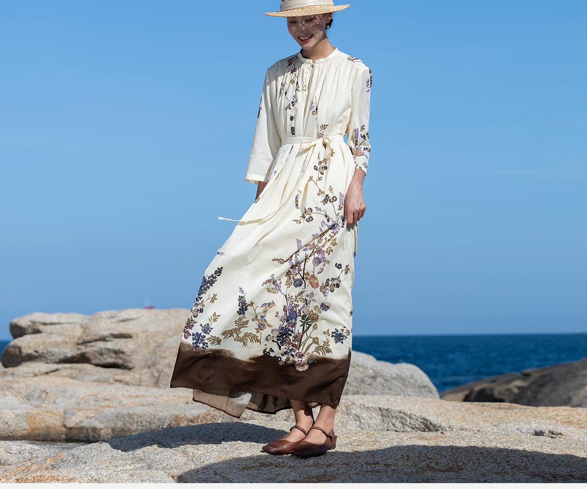牧衣游原创印花100支进口比马棉连衣裙新款轻薄文艺宽松长裙 云织