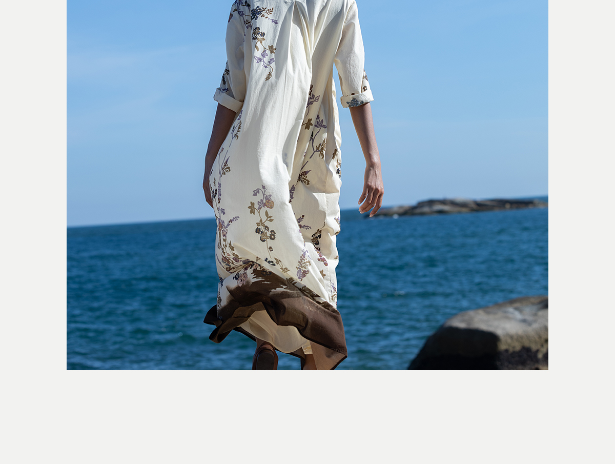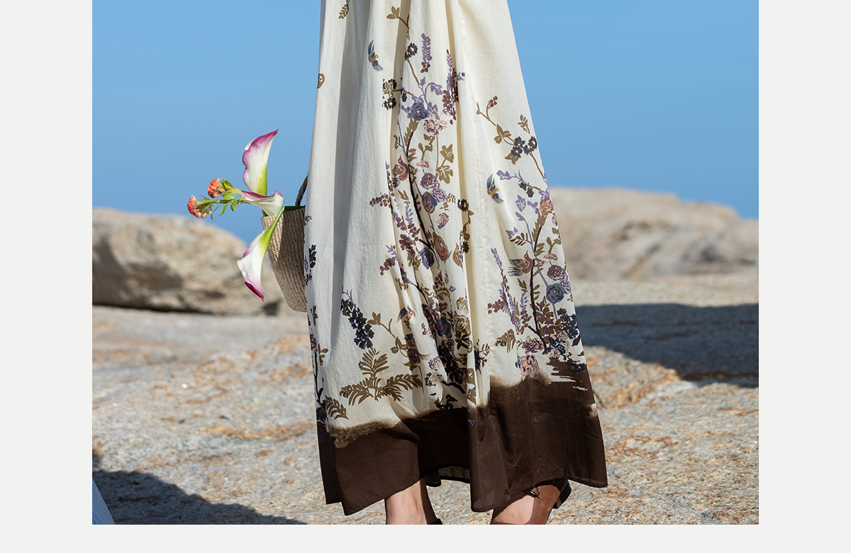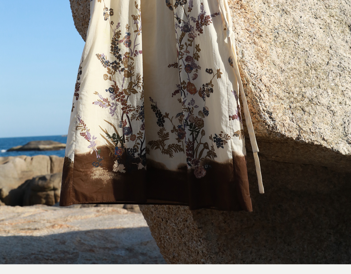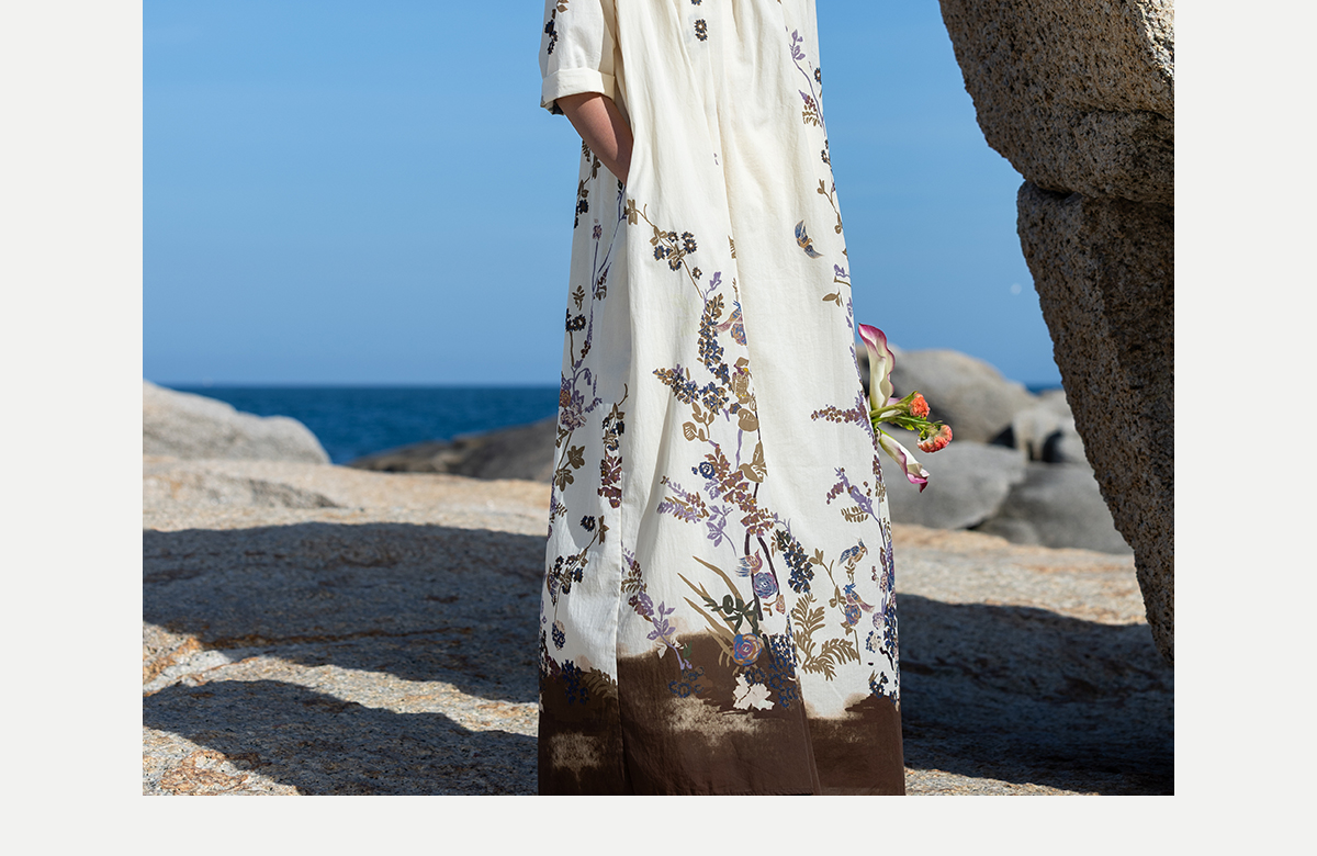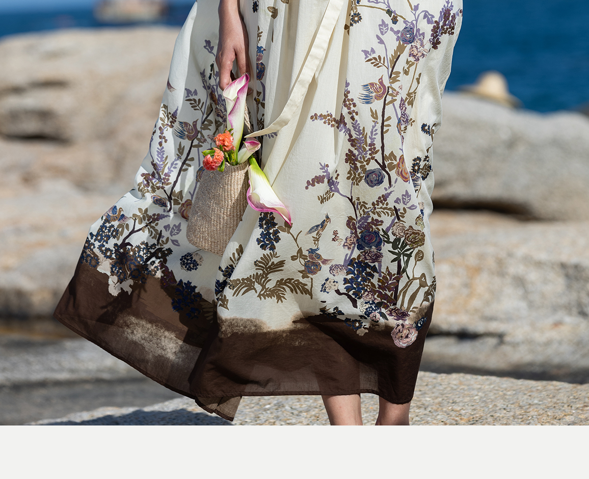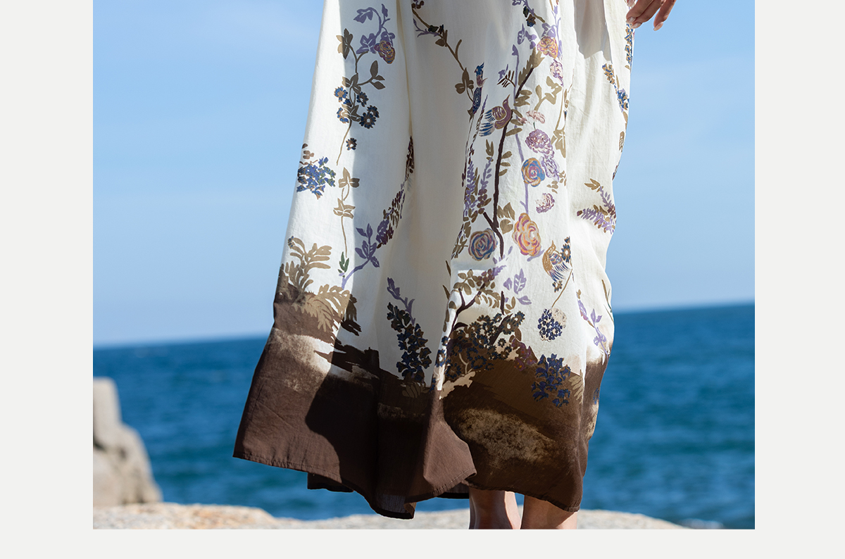 牧衣游原创印花100支进口比马棉连衣裙新款轻薄文艺宽松长裙 云织