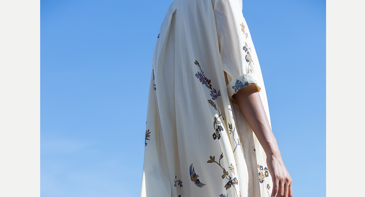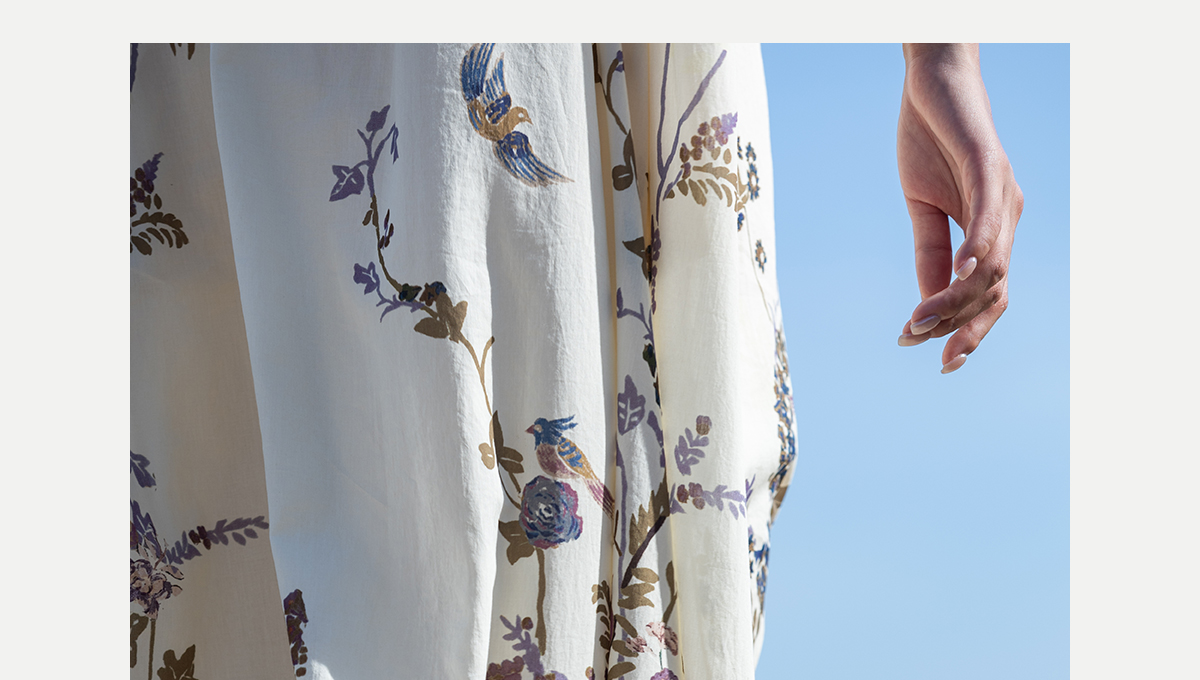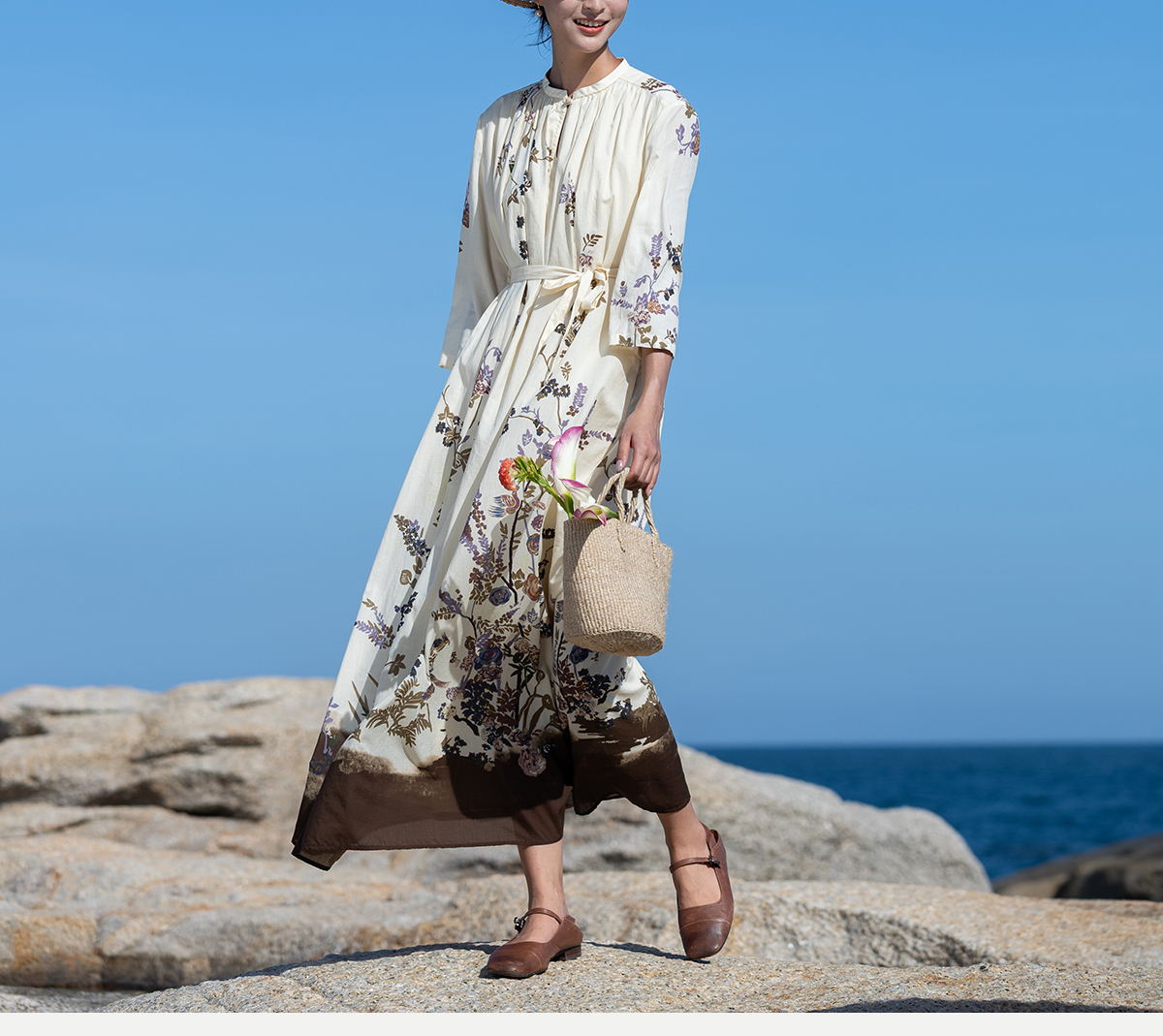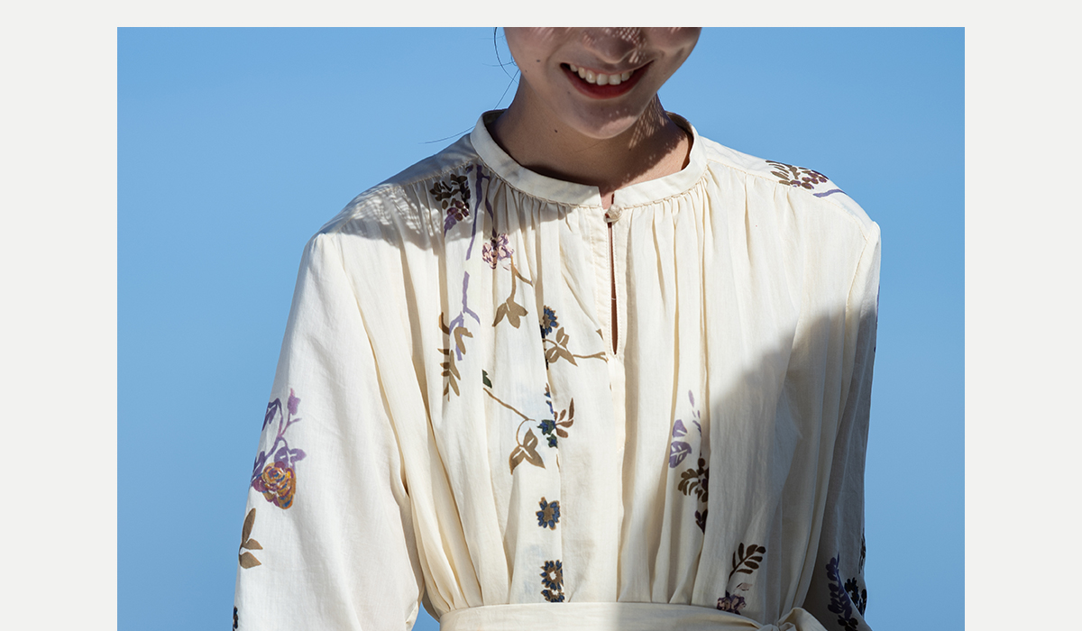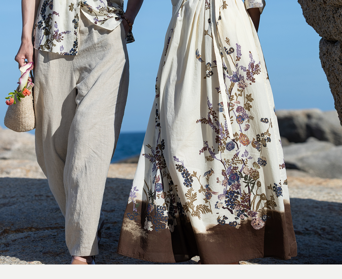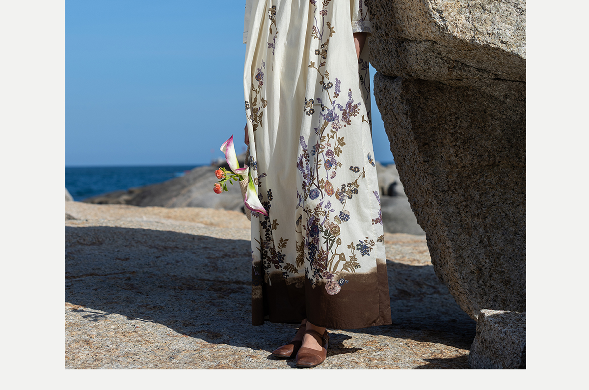 牧衣游原创印花100支进口比马棉连衣裙新款轻薄文艺宽松长裙 云织