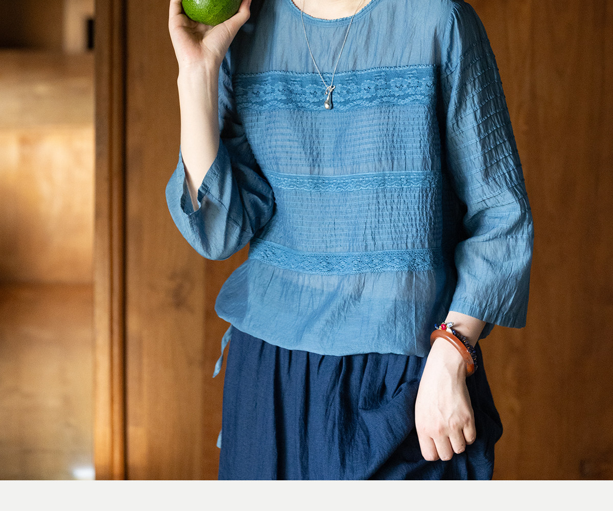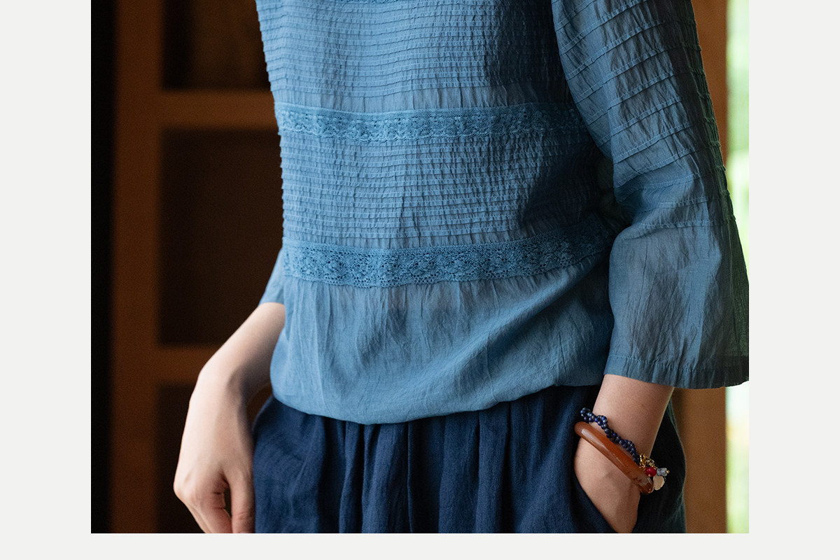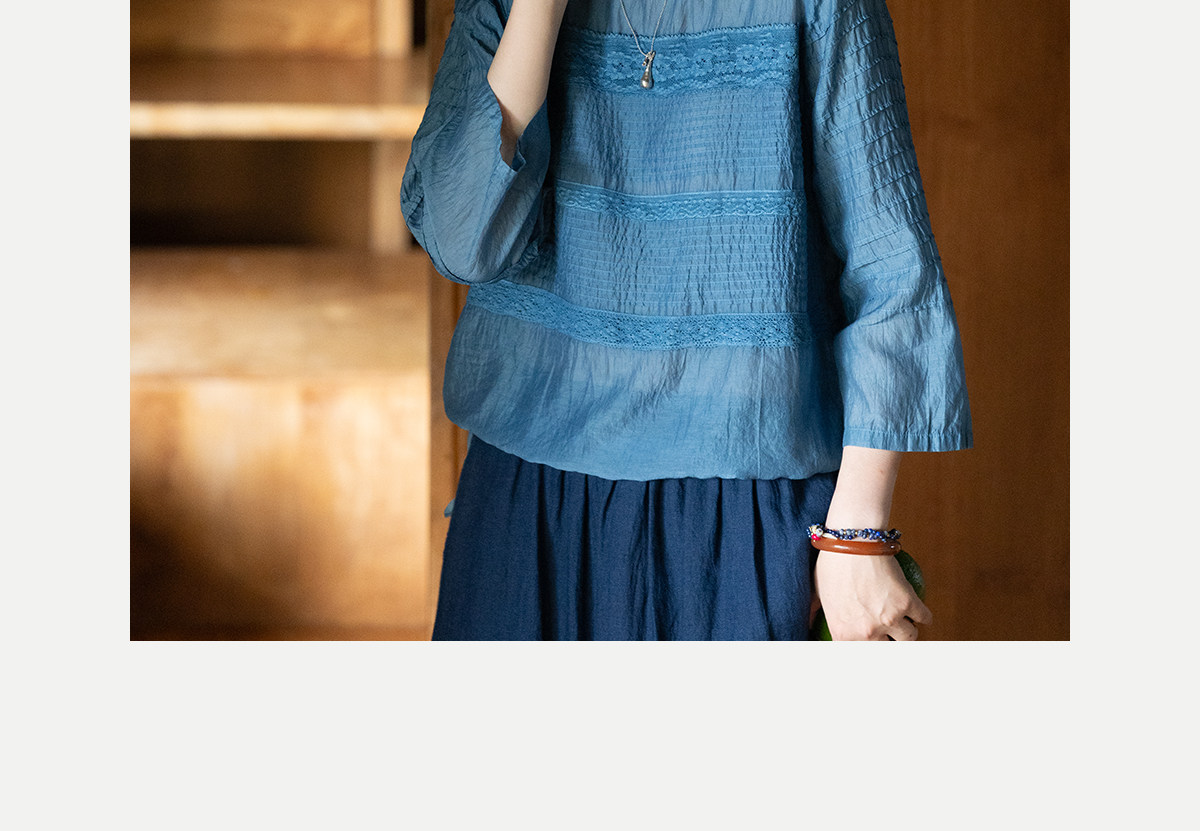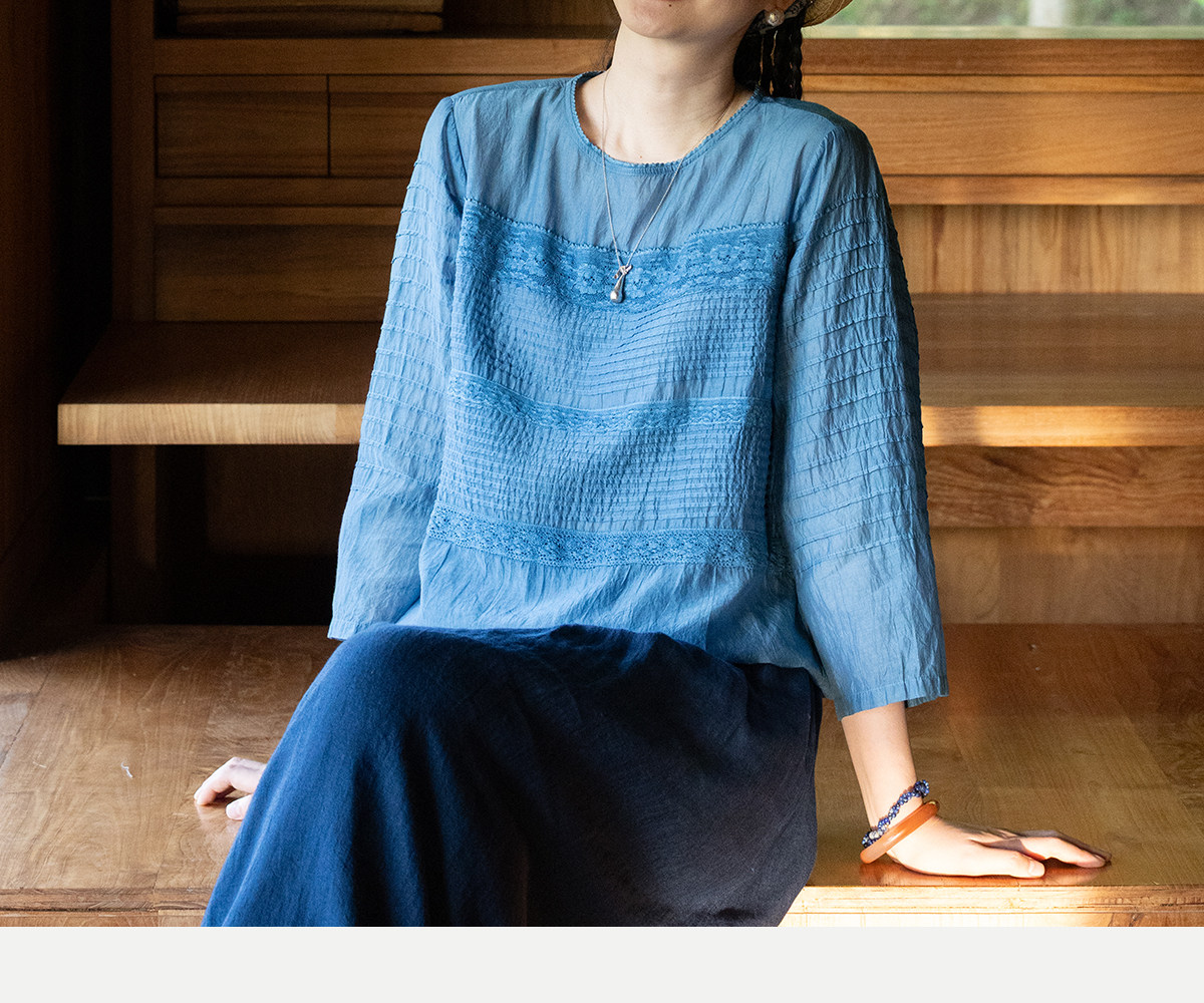 艺术家联名款 牧衣游原创植物染丝棉小衫打条宽松百搭上衣 植音