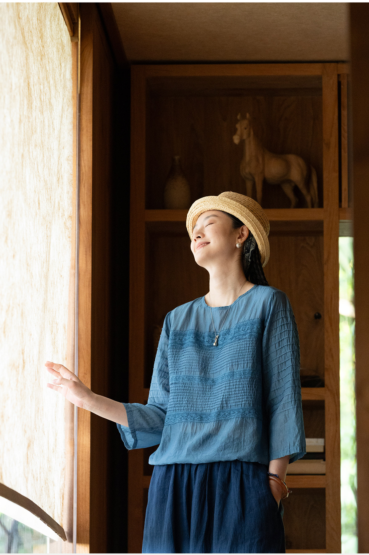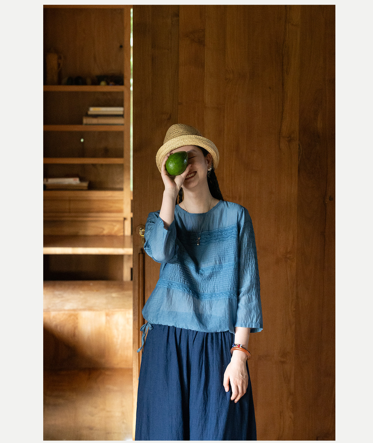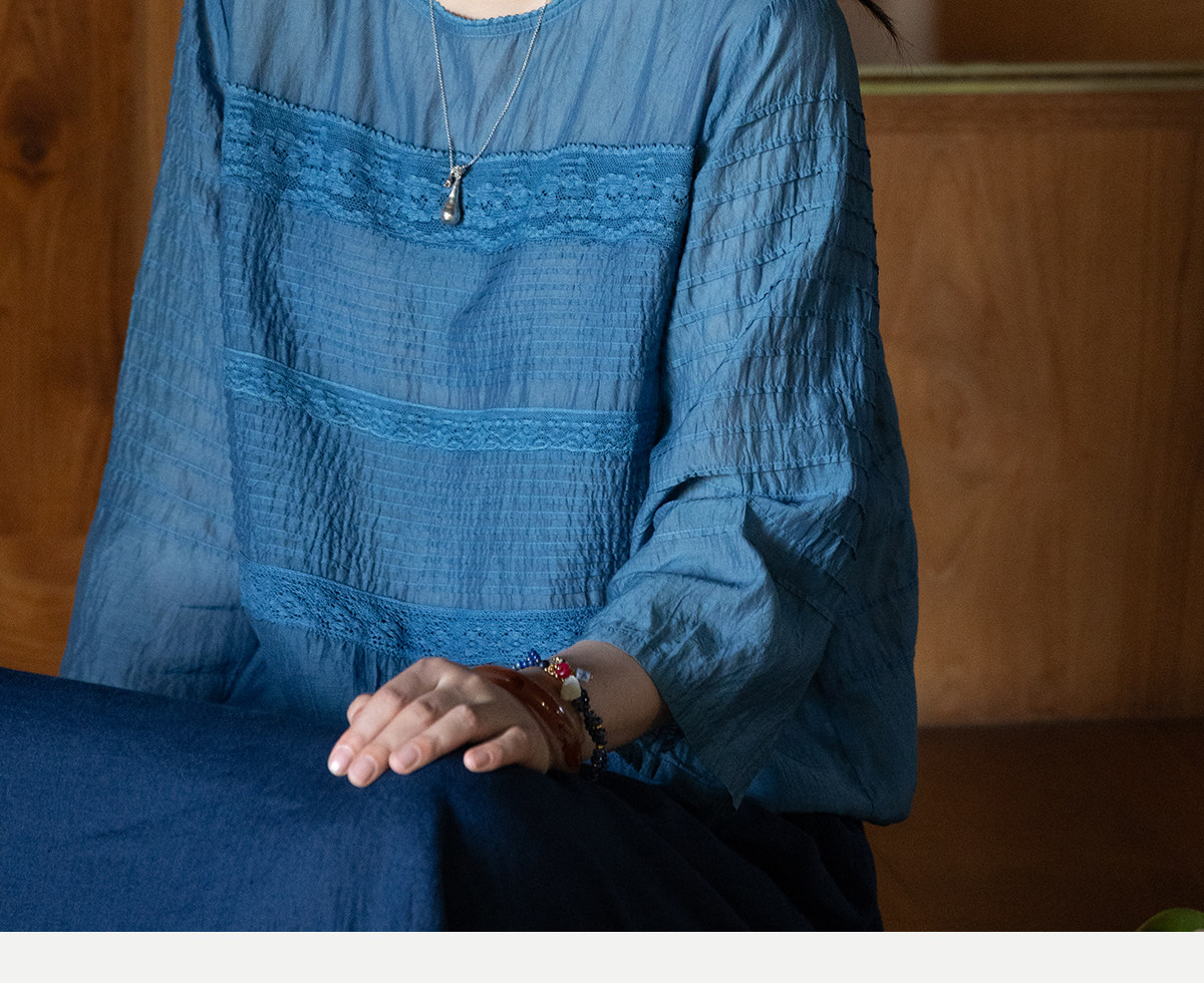 艺术家联名款 牧衣游原创植物染丝棉小衫打条宽松百搭上衣 植音