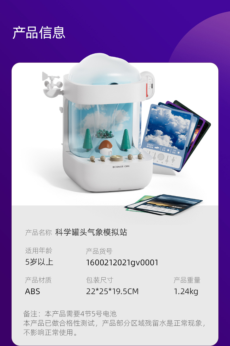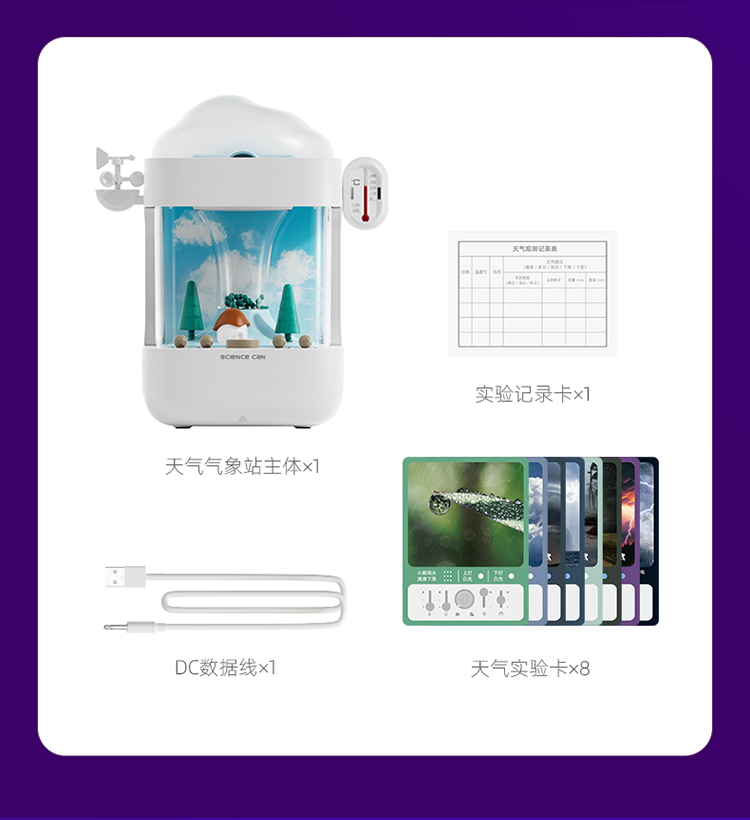 科学罐头气象模拟站科学实验降雨水量生态站儿童培养模拟天气玩具