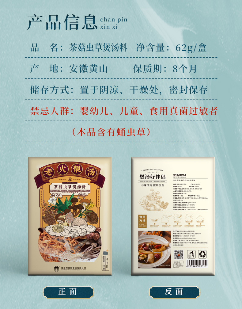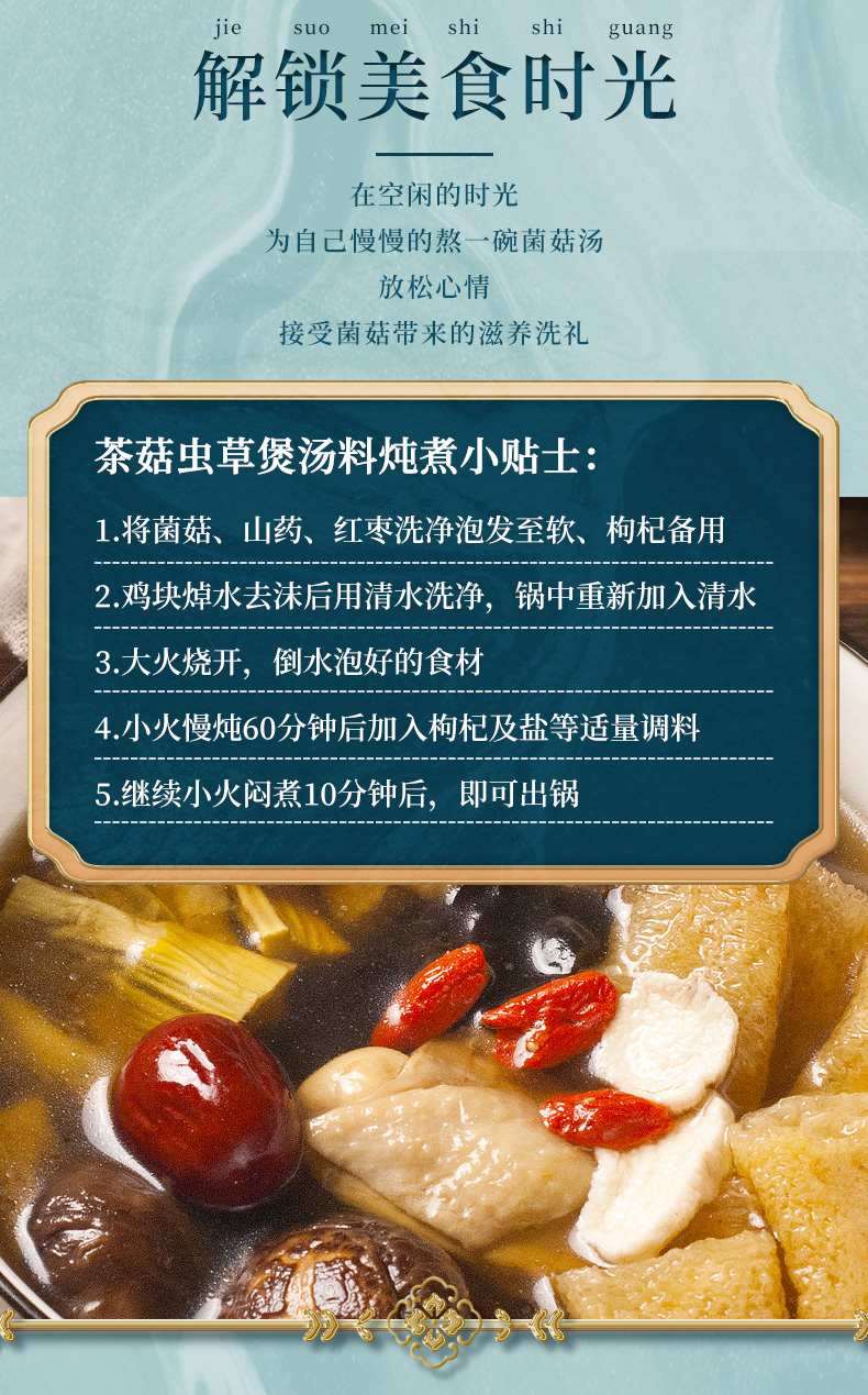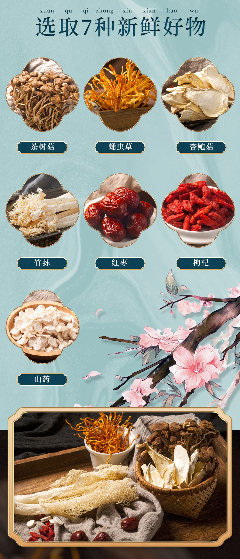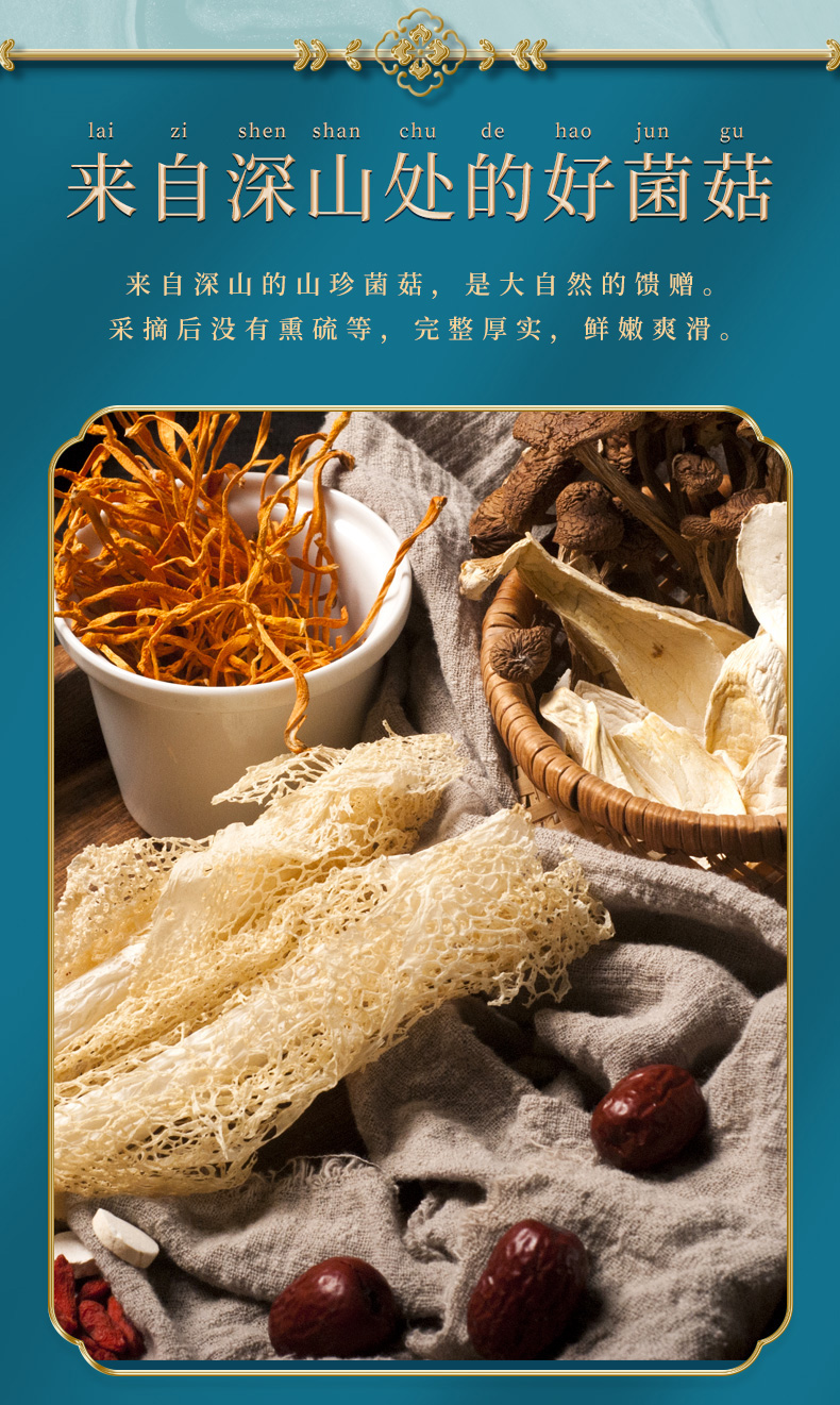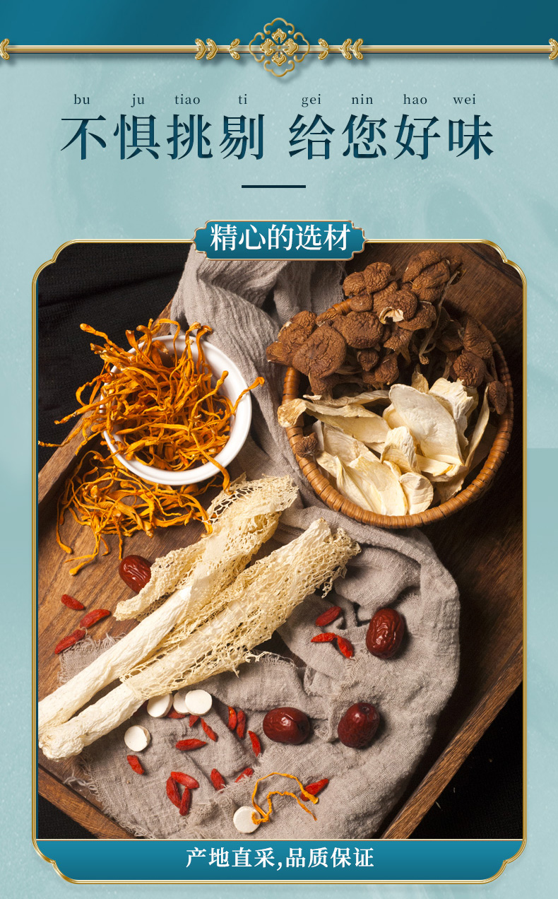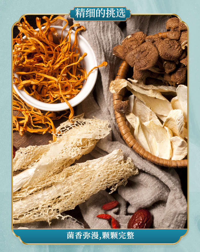 老火靓汤茶菇虫草煲汤料菌菇干货煲汤食材7种组合山珍62g