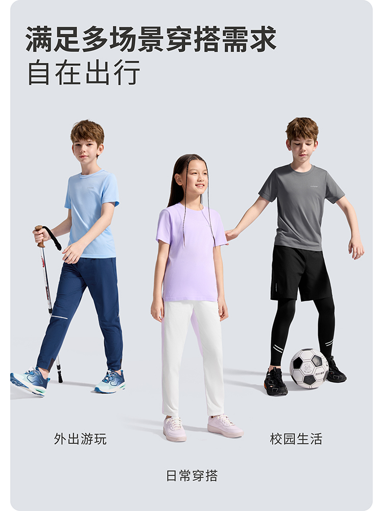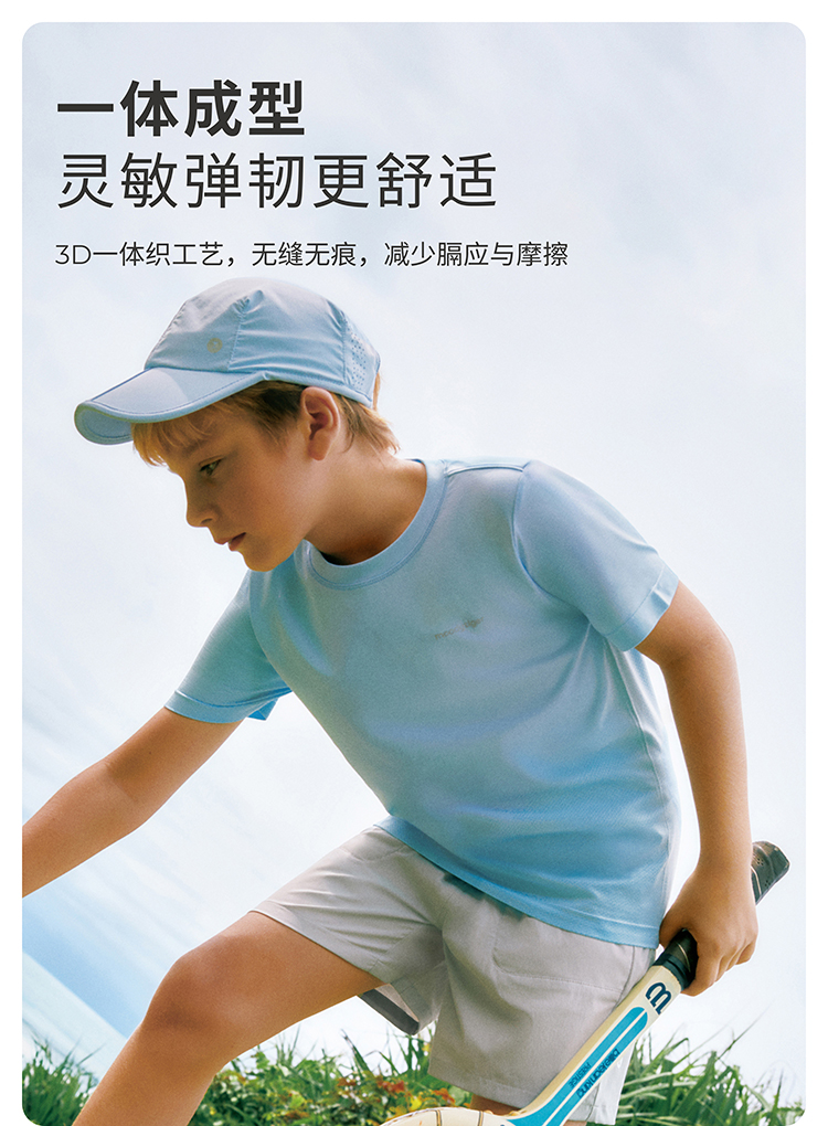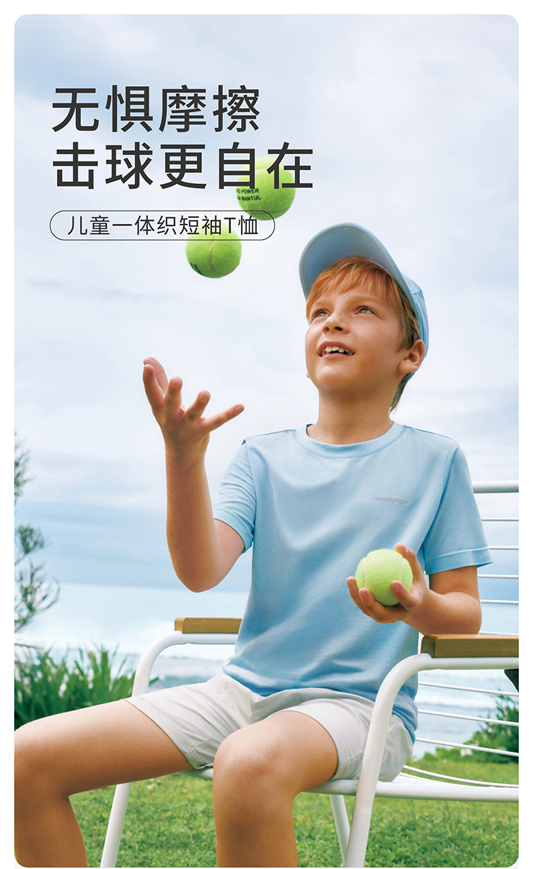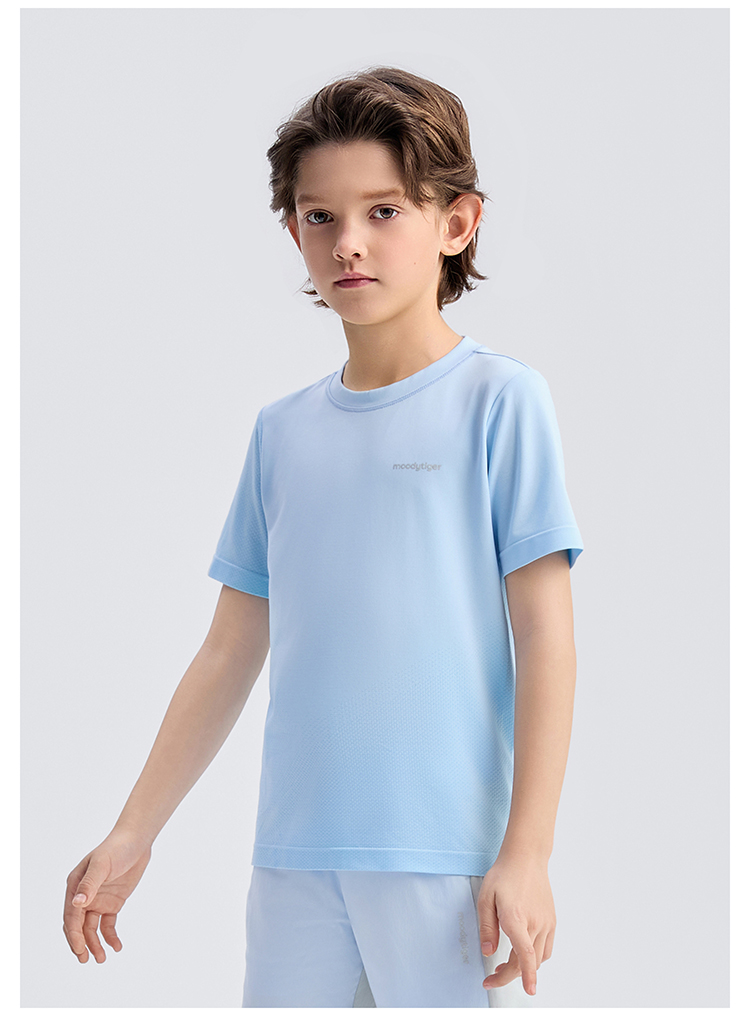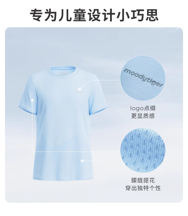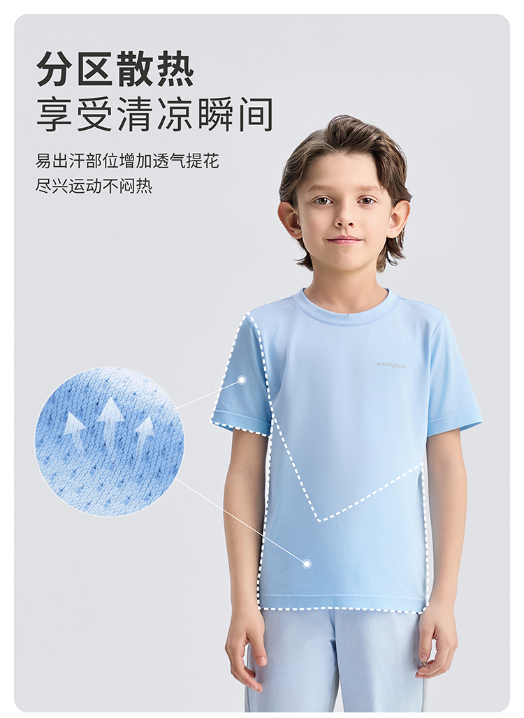 【DR暑假】moodytiger儿童T恤25夏新中性透气吸湿排汗一体短袖上衣52510111
