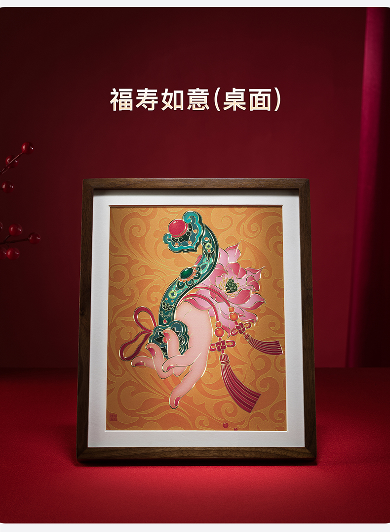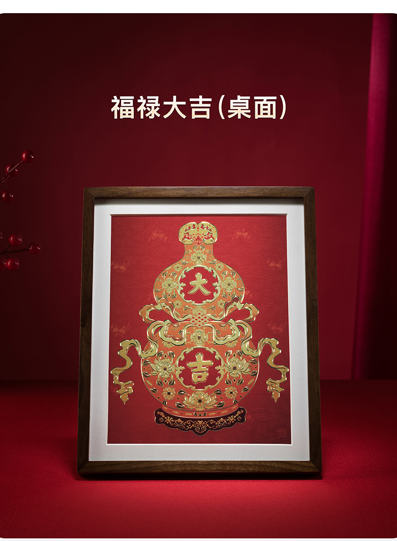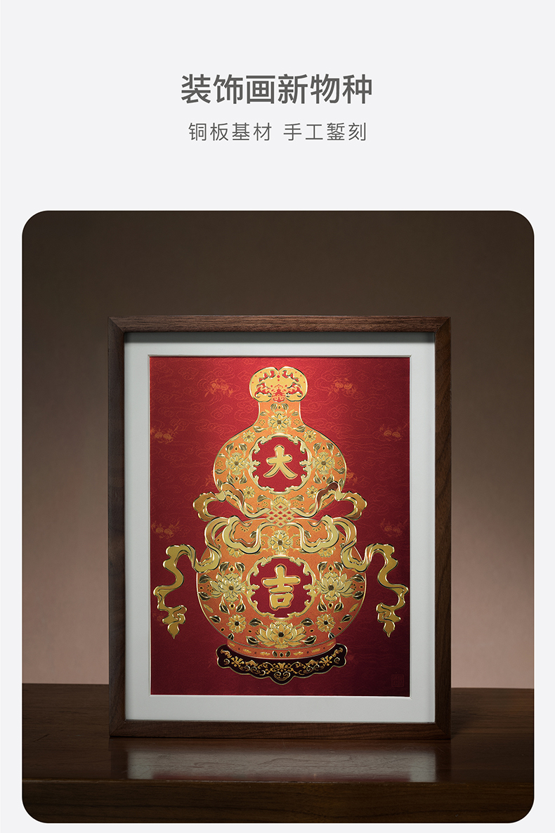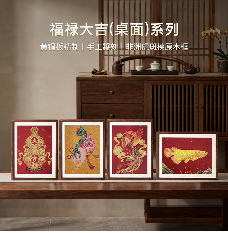 铜师傅 手工錾刻 铜雕画《福禄大吉(桌面)系列》办公室装饰画