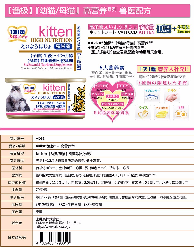 渔极猫罐头泰国进口幼猫成猫高营养病后术后产后绝育恢复湿粮