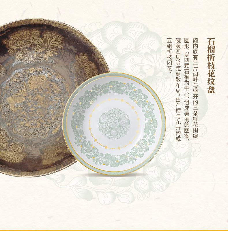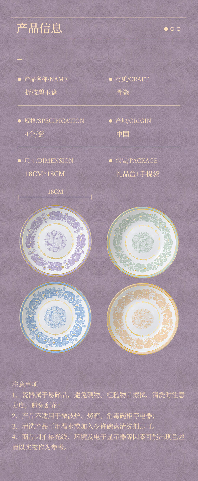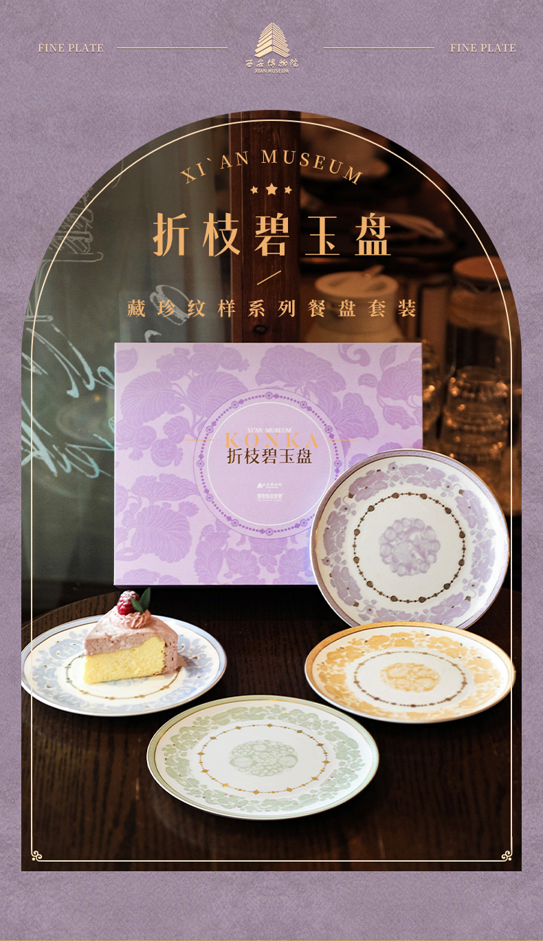 西安博物院馆藏文物折枝碧玉盘餐盘套装4个/套礼盒装