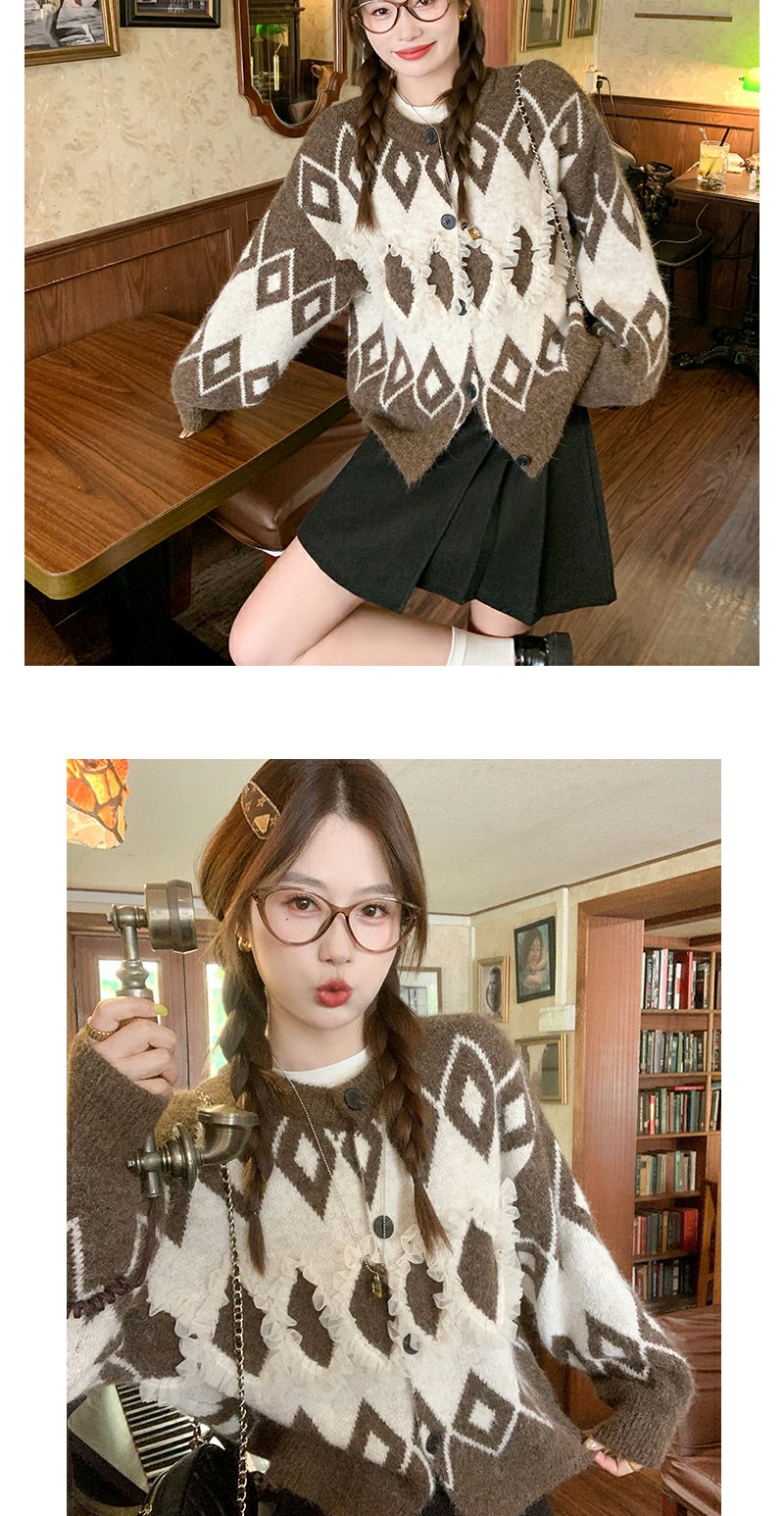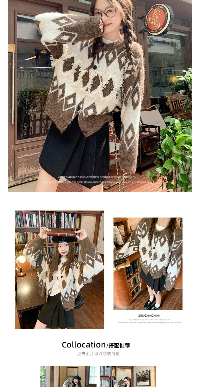 <曾小咸推荐> 现货秒杀!微信超特价!复古咖色菱格毛衣开衫 日常219.99 立减120 秒杀99.99!