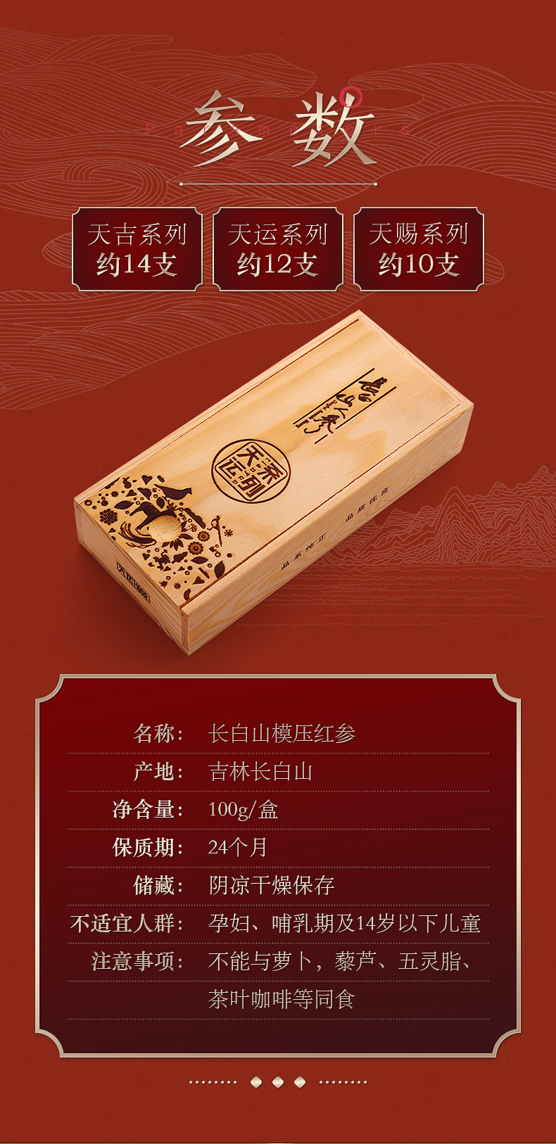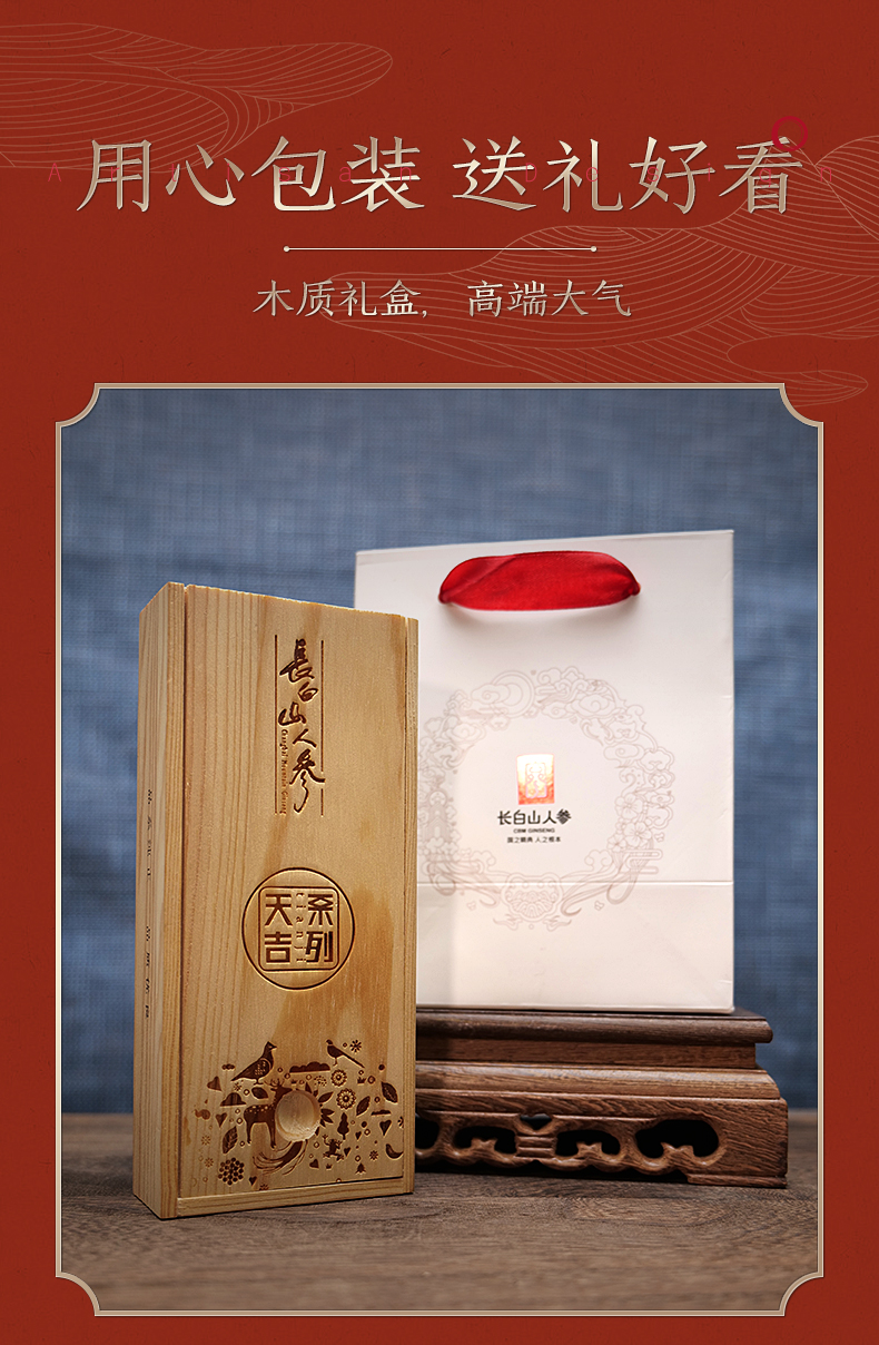 热卖【模压红参】长白山人参模压红参天运/天吉/天赐木盒100g