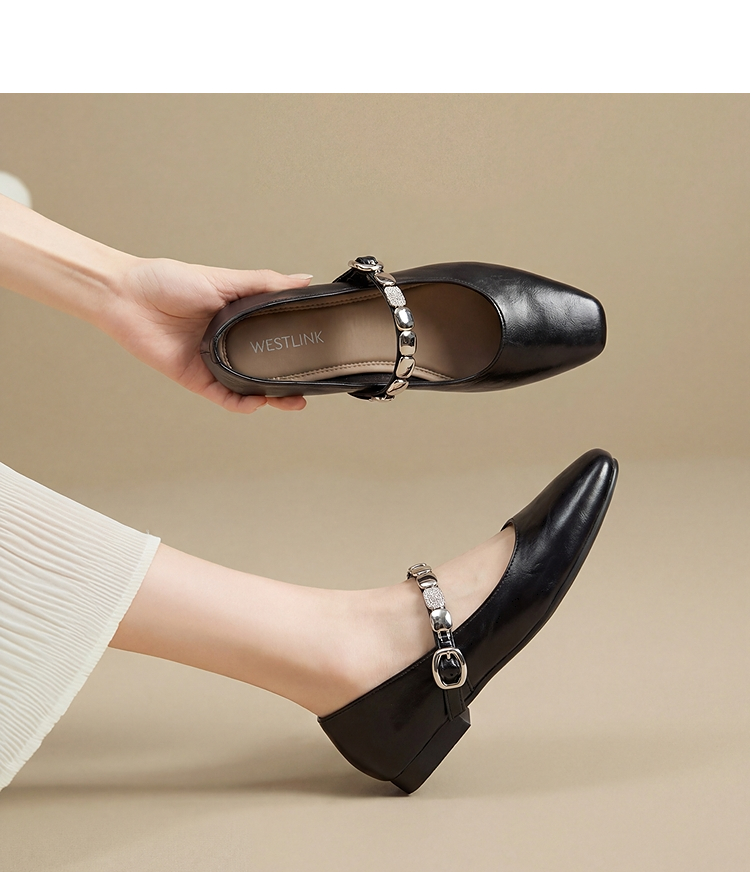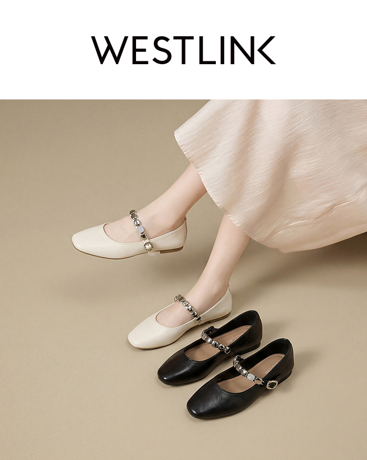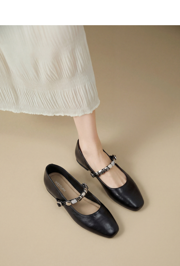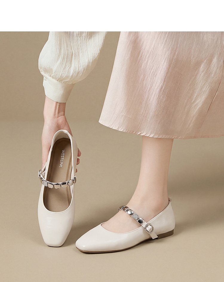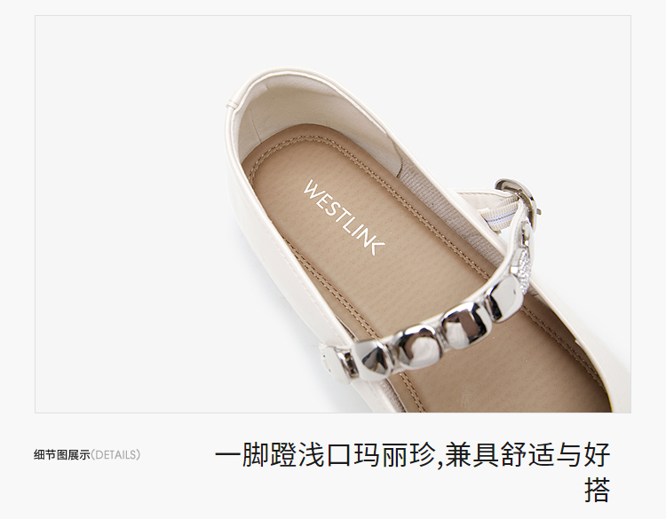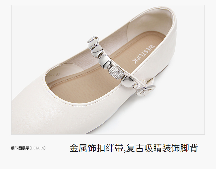 西遇浅口玛丽珍女鞋2026新款春季金属饰扣一字带软底舒适低跟鞋子V0166202