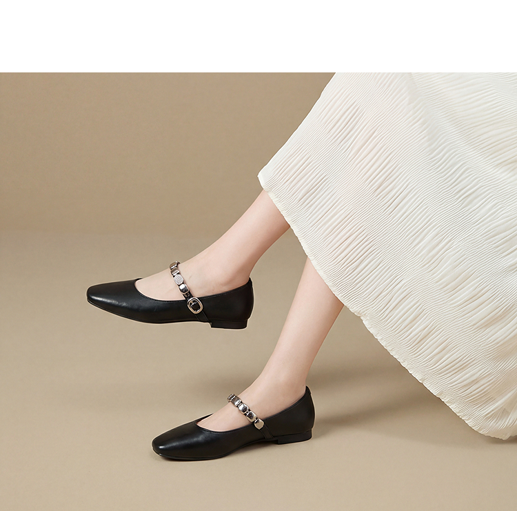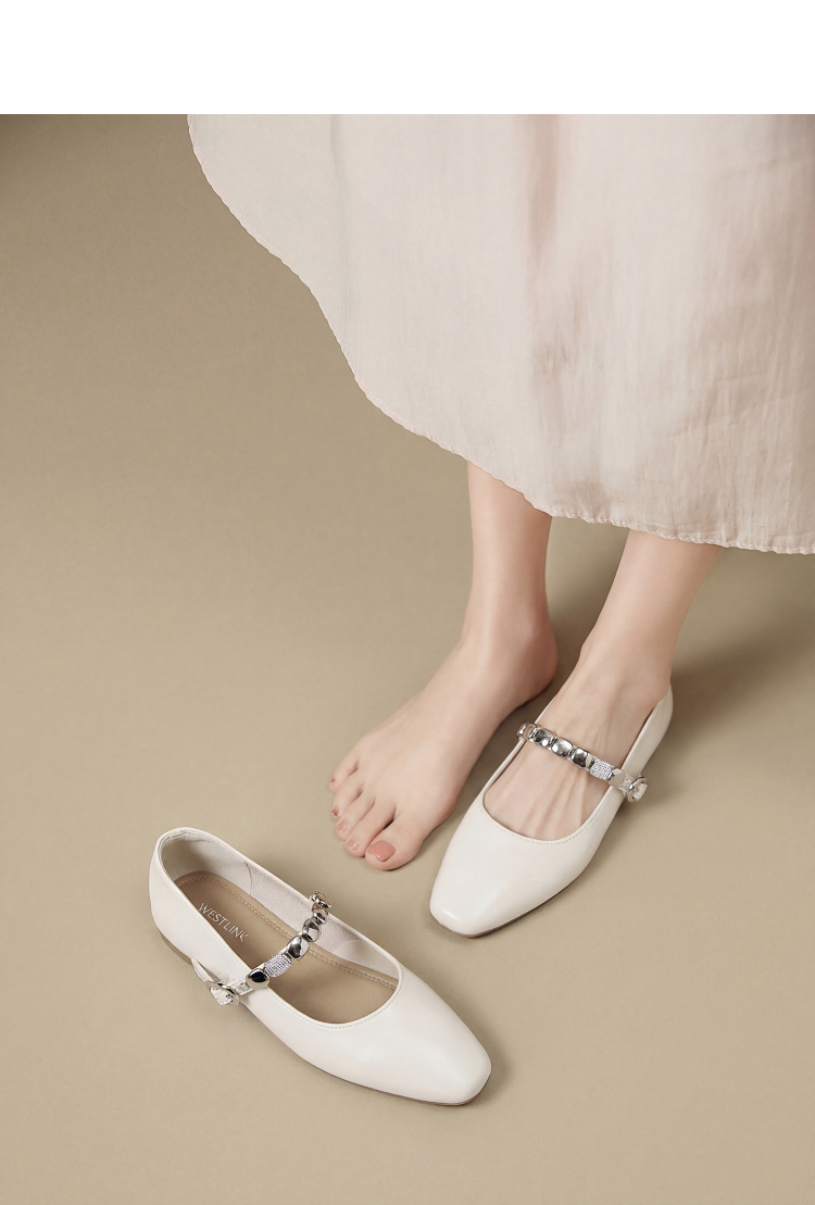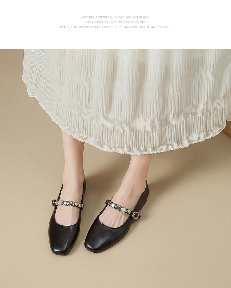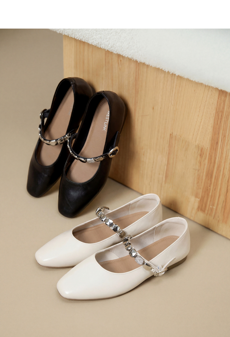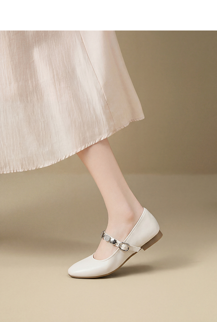 西遇浅口玛丽珍女鞋2026新款春季金属饰扣一字带软底舒适低跟鞋子V0166202