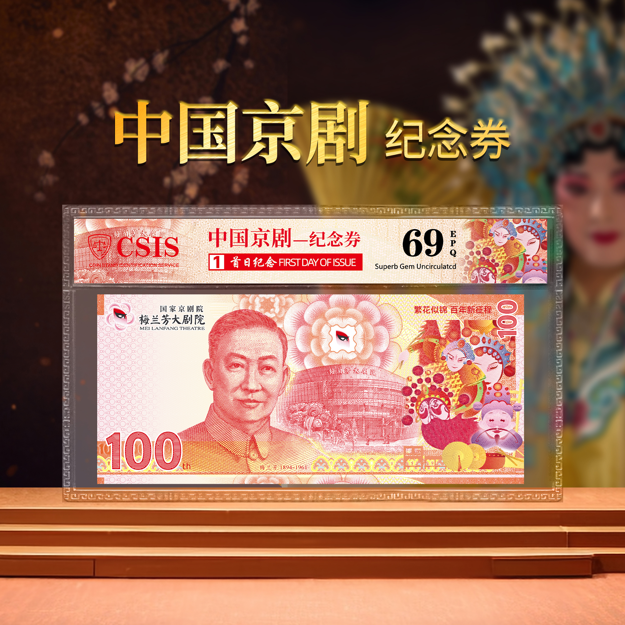 中国京剧梅兰芳纪念券+大美中国纪念章封装评级