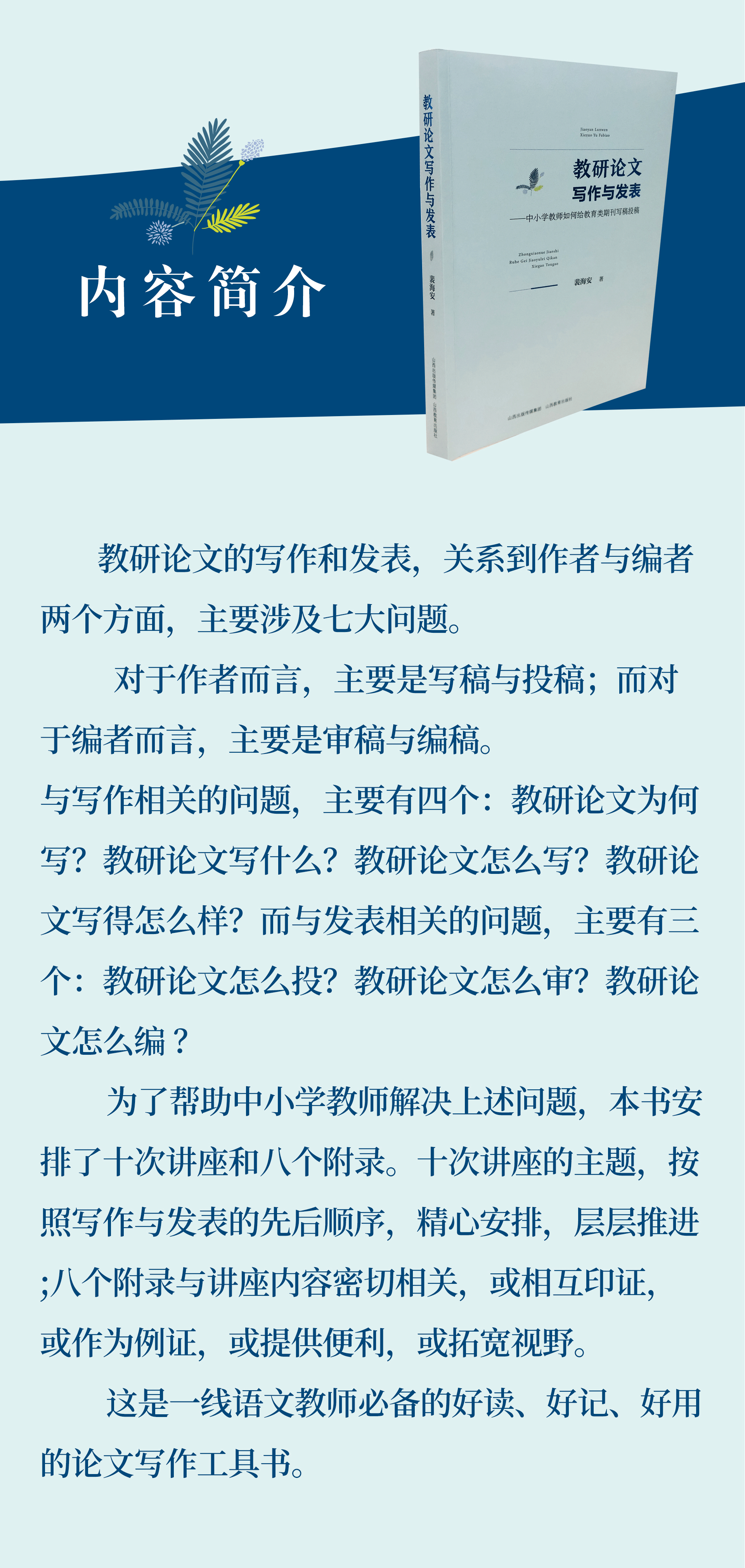 正版 教研论文写作与发表—中小学教师如何给教育类期刊写稿投稿 裴海安著 山西教育出版社出版