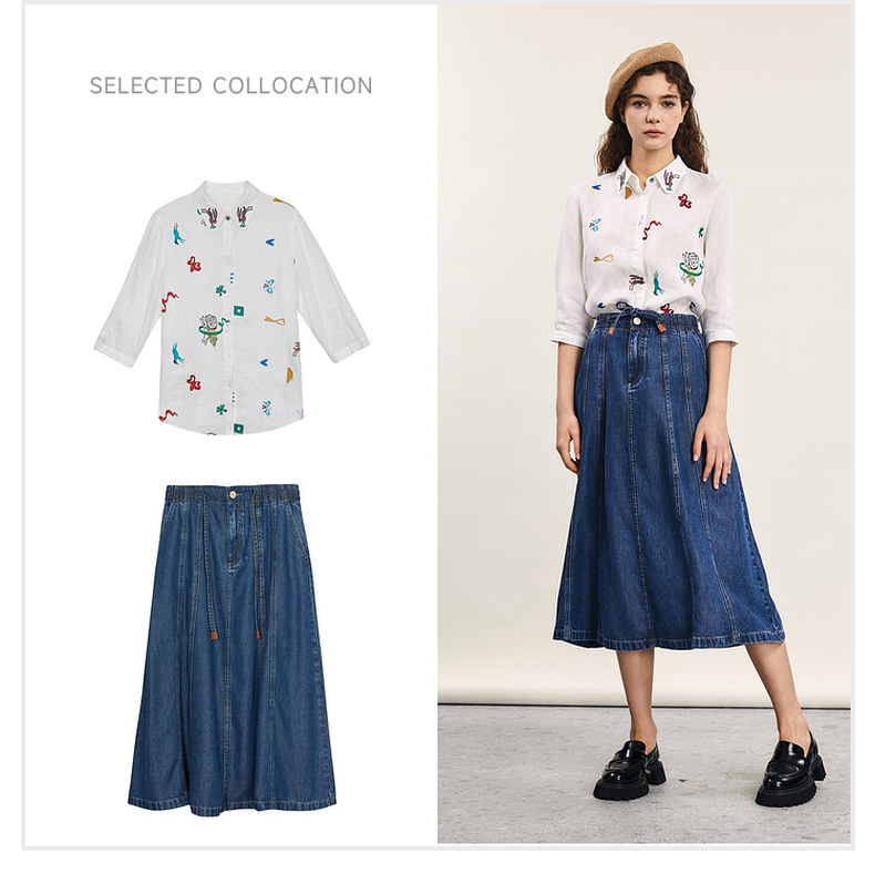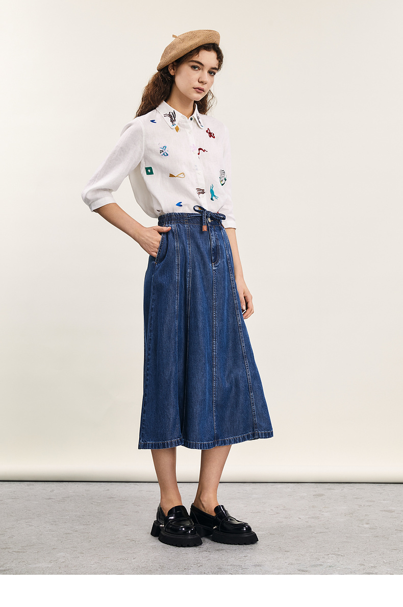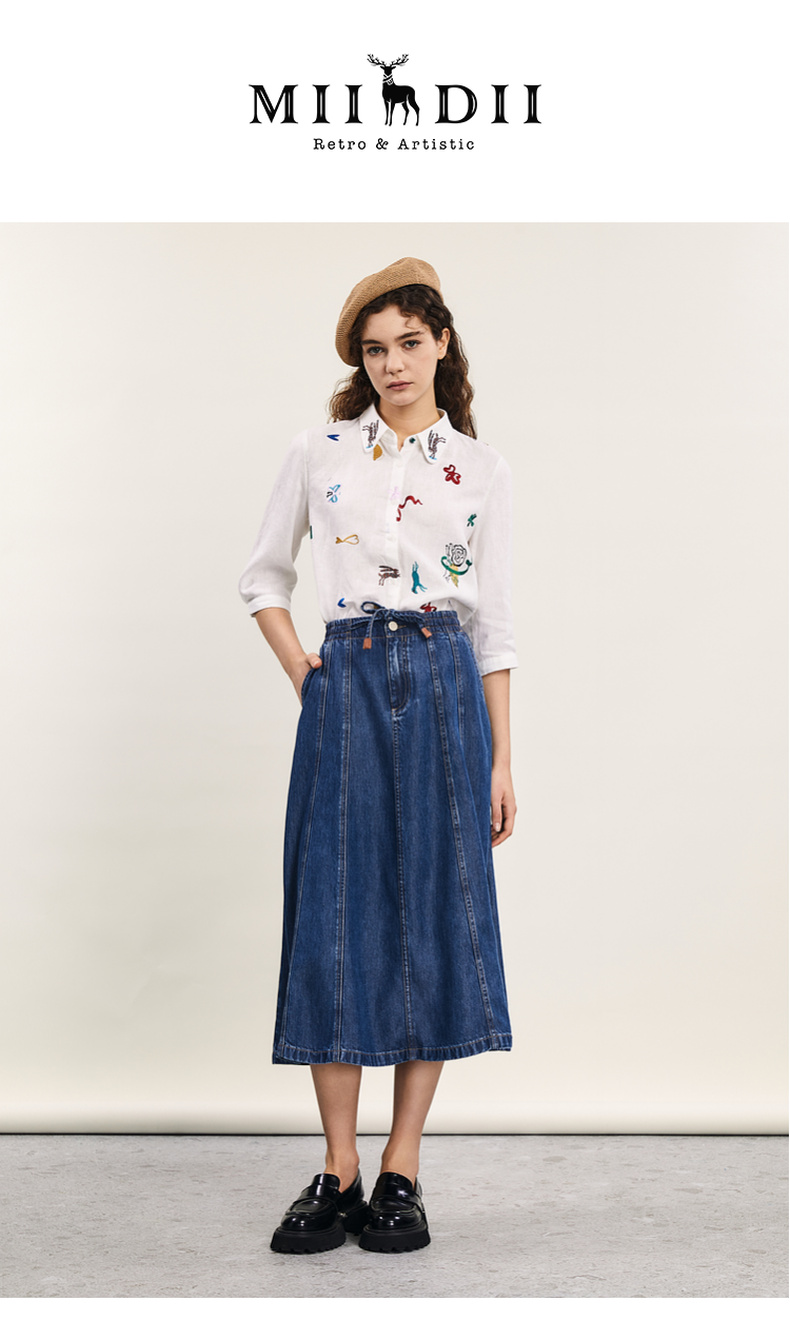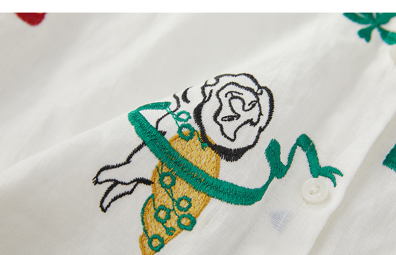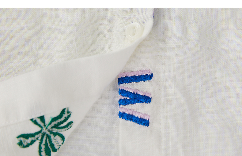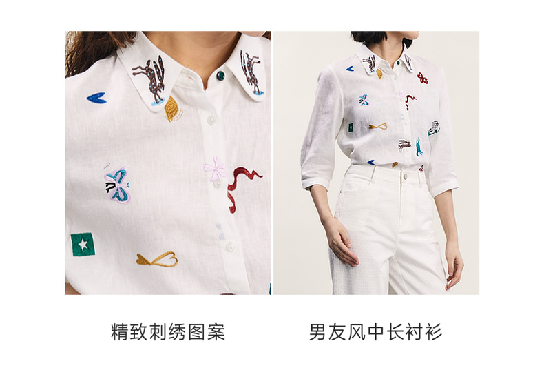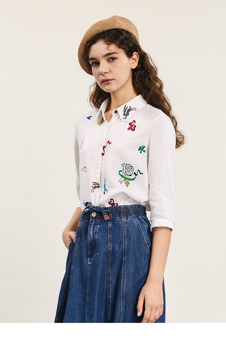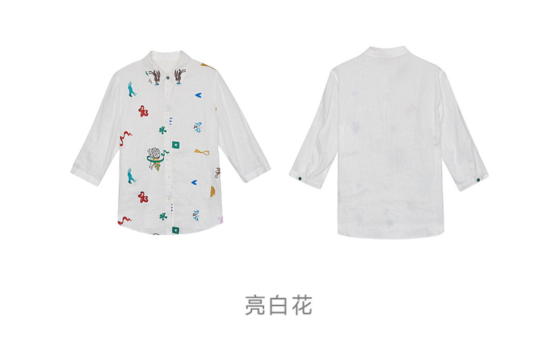 谜底绣花衬衫七分袖女2024夏季新品复古风亚麻宽松衬衣242MC0643