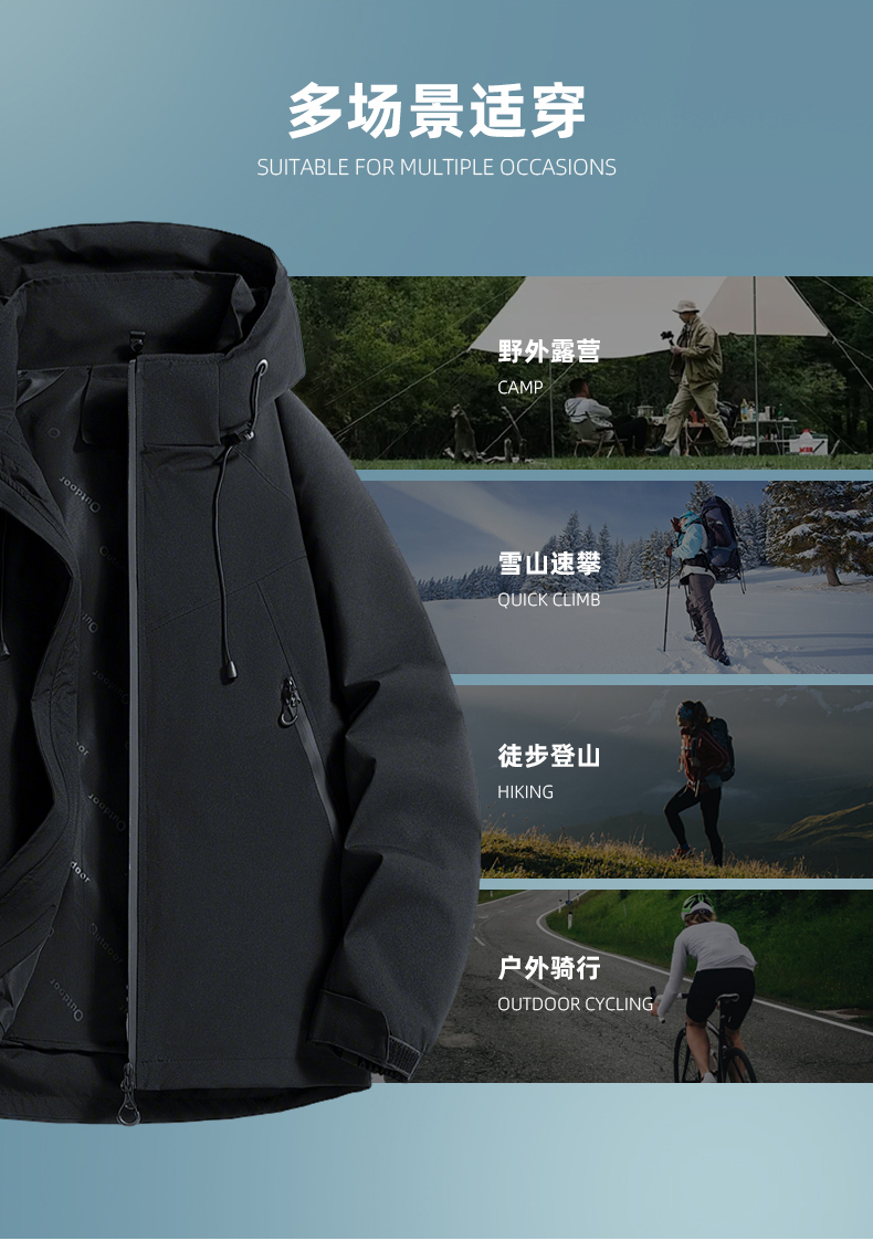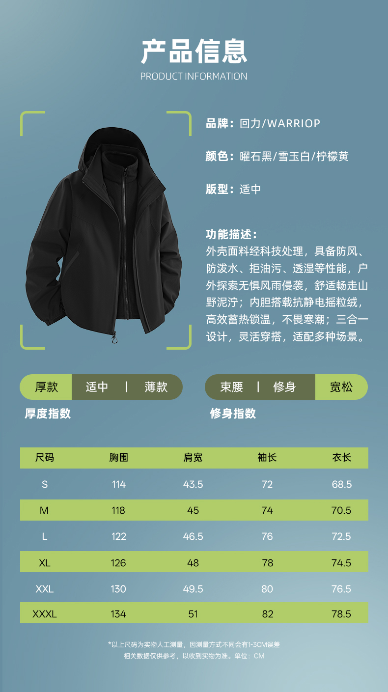 回力三合一冲锋夹克男女情侣款2025新款秋季户外防风防雨保暖外套