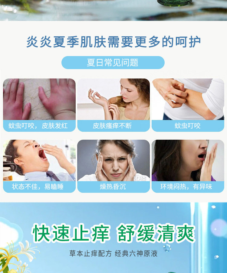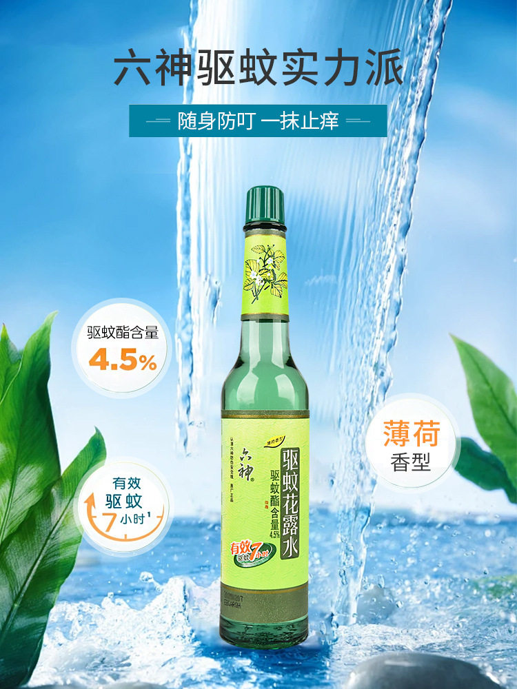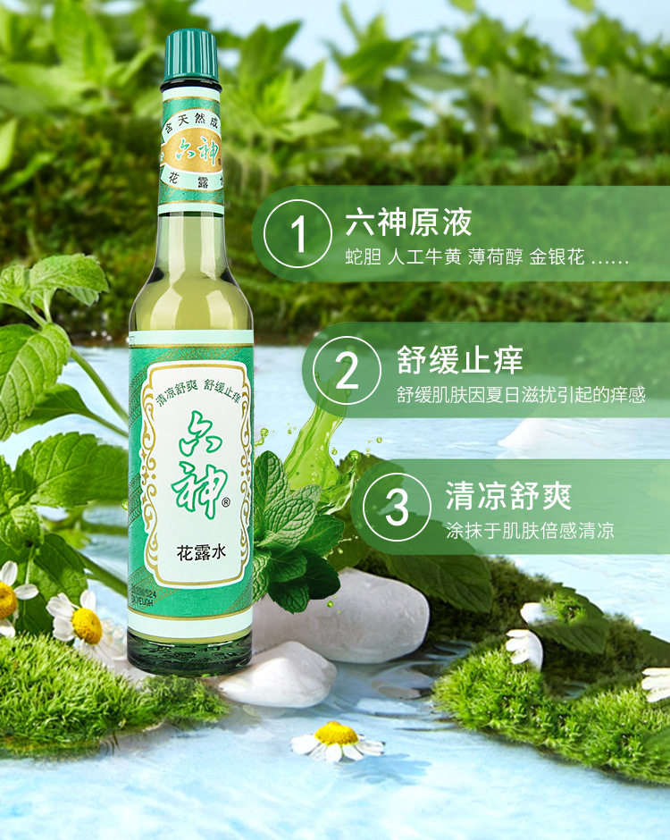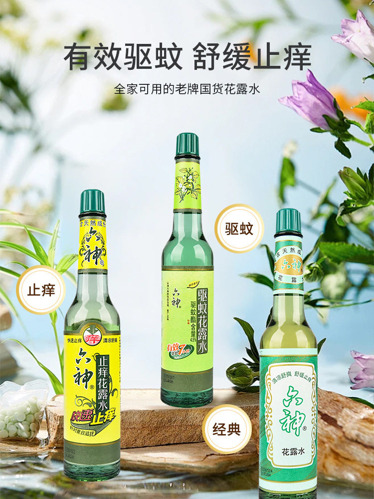 六神经典玻璃瓶花露水195ml