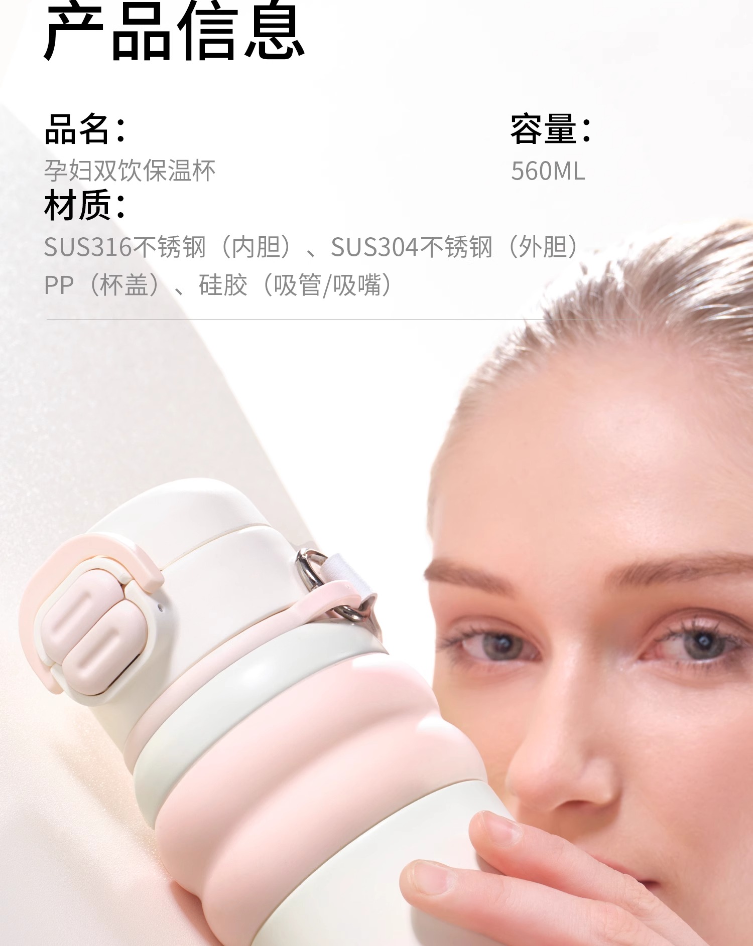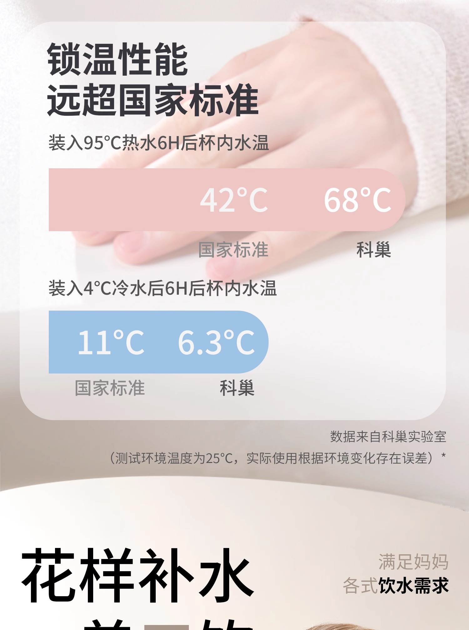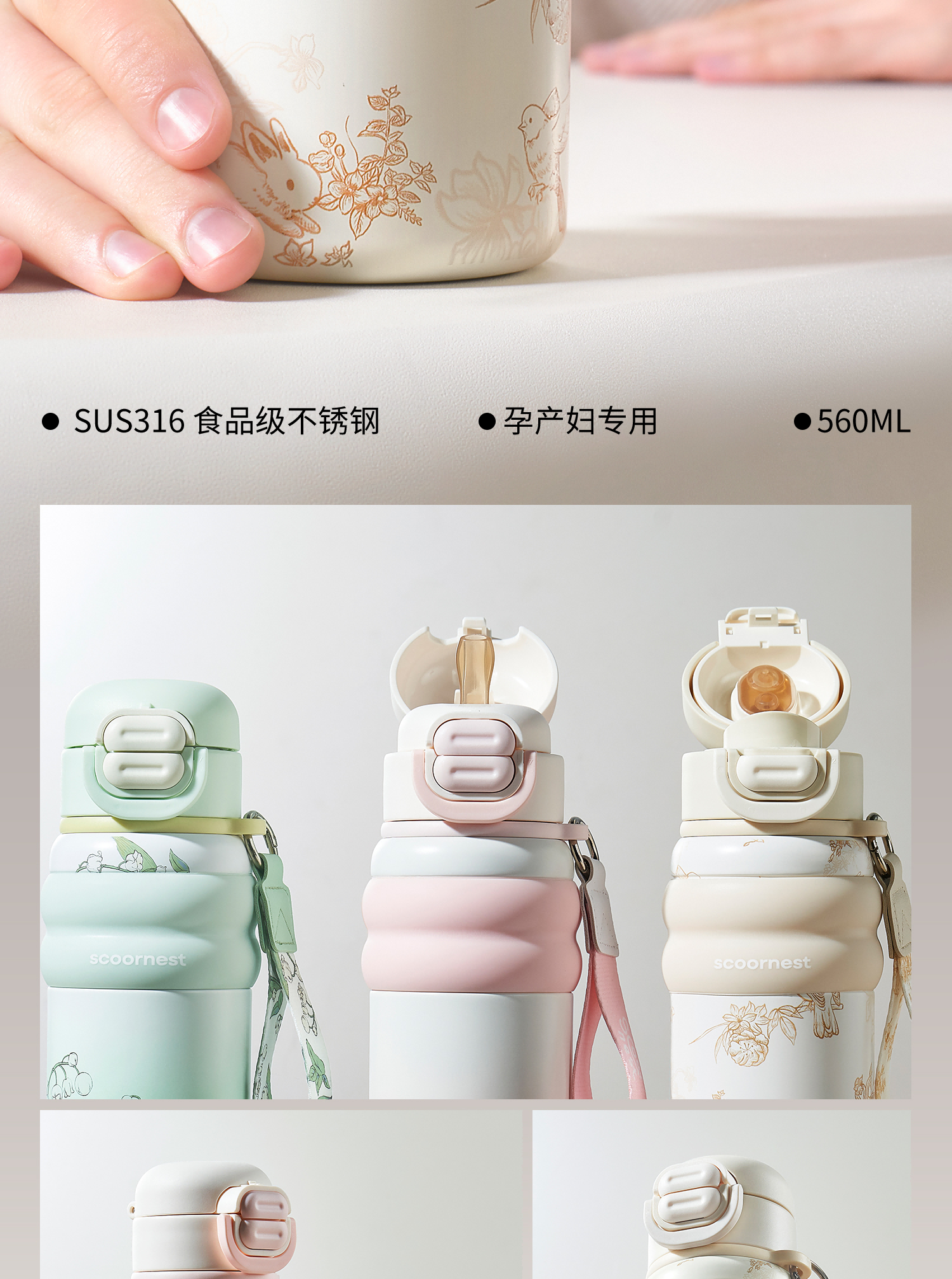 科巢吸管保温水杯子316不锈钢高颜值孕产妇专用大容量女2024新款